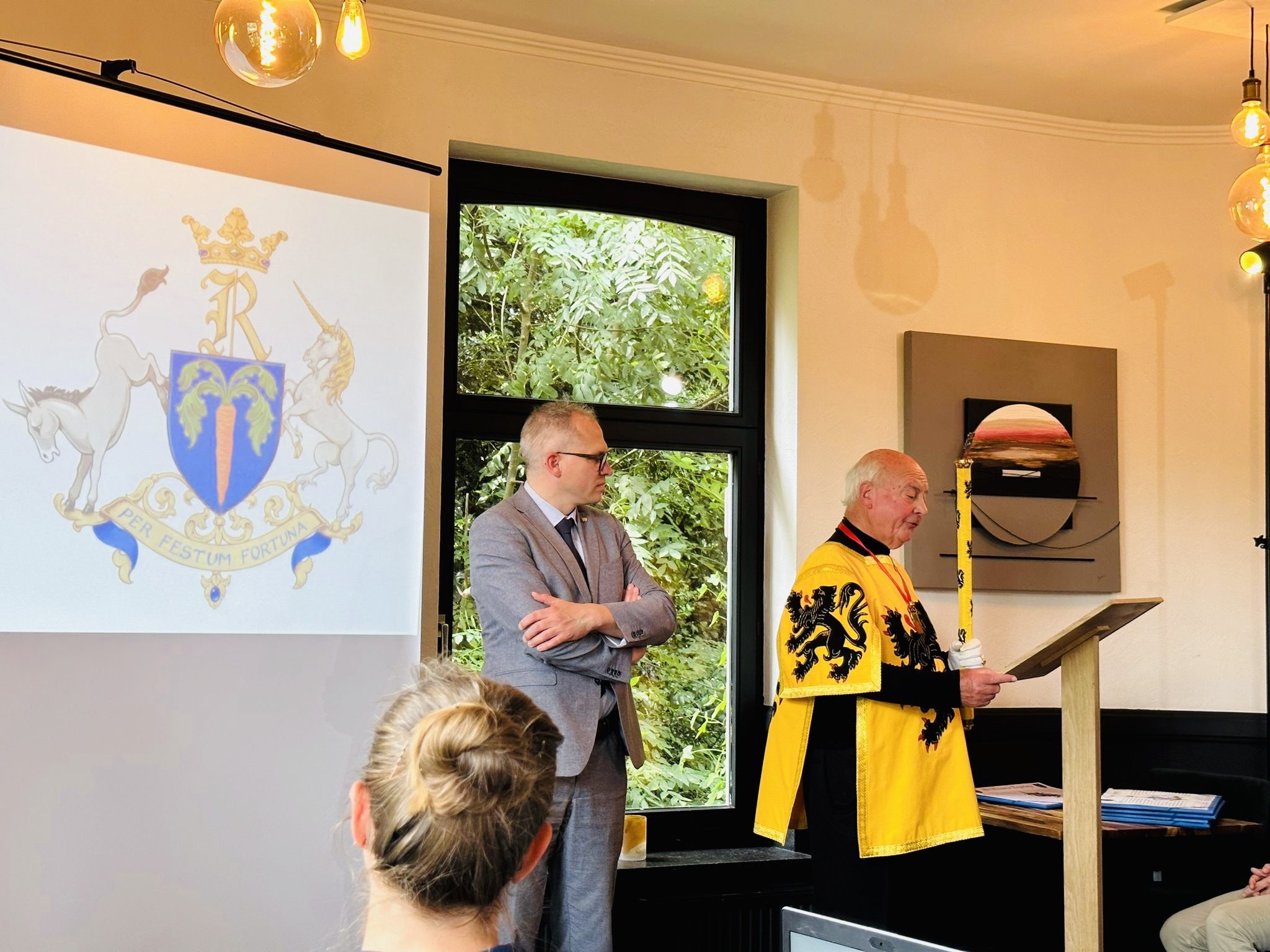Over het hoe en het waarom en vooral over de symboliek van wapenschild en spreuk, gaven Pascal Van de Waeter en mederidders maandagavond 10 juli tekst en uitleg.