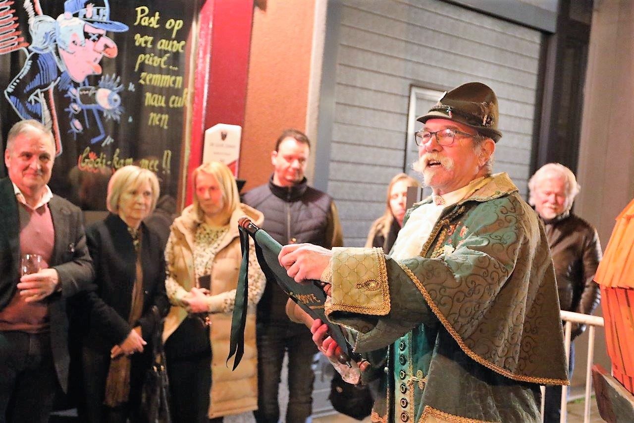 De Ninoofse belleman Hans Van Laethem mocht de wettel Axarie onthullen en dopen, samen met de leden van NKV Veneir Te Naujg.