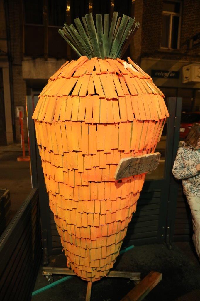 David Van Den Spiegel is de ontwerper van de wortel: “Het is een ecologische wortel geworden volledig uit houten latjes, met als slogan ‘Het is niet wat je ziet wat het is’, aldus de mysterieuze omschrijving.”