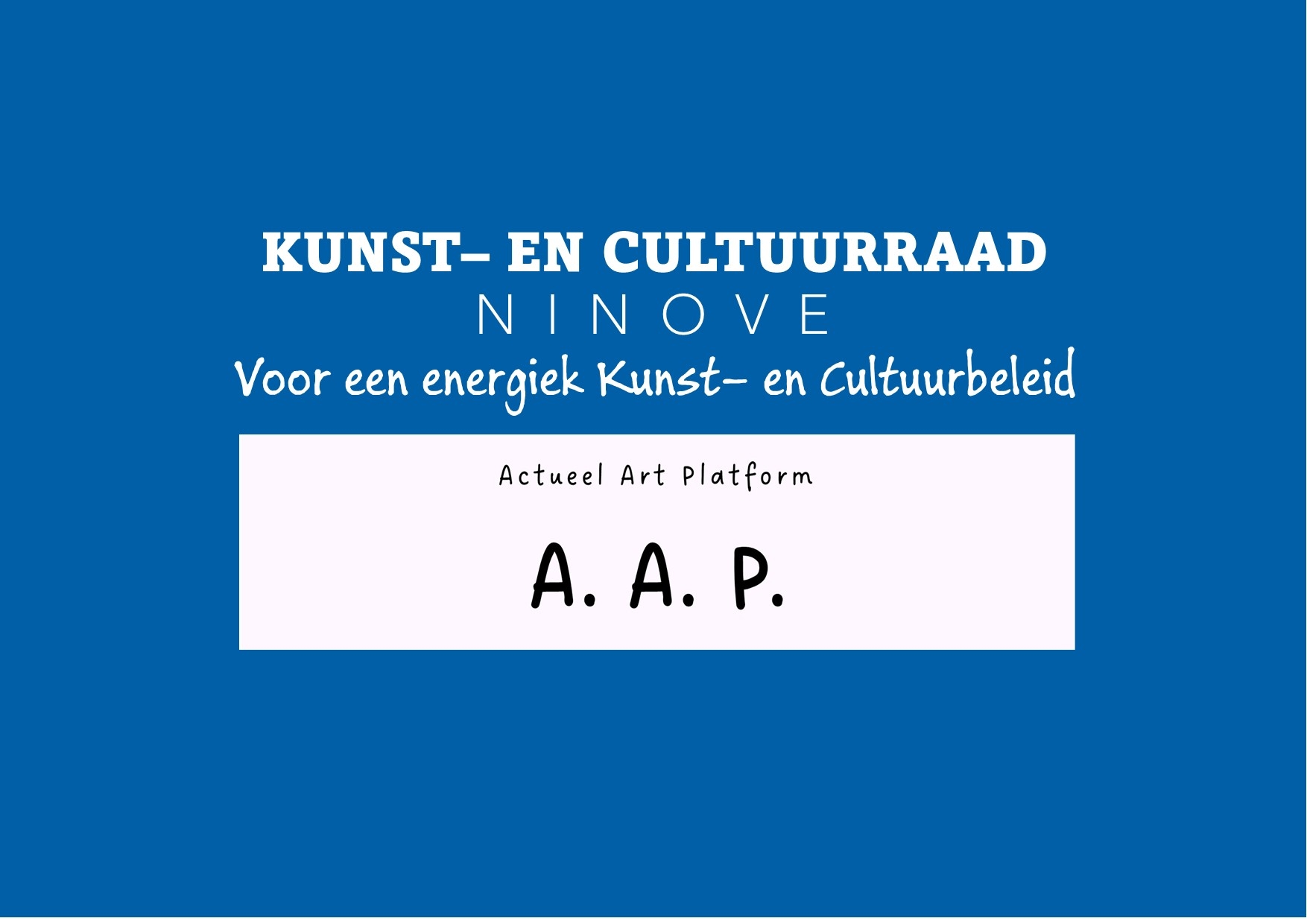 A.A.P. wil de actuele kunsten in Ninove bevorderen en op die manier de stad op de kaart te zetten van het Vlaamse kunstenlandschap. Dat gebeurt niet alleen voor de beeldende kunsten maar ook voor hedendaagse muziek, literatuur, poëzie, dans, film.