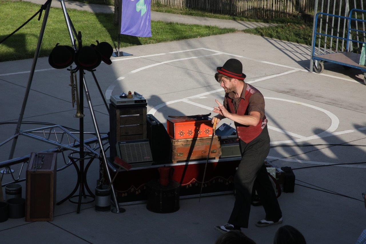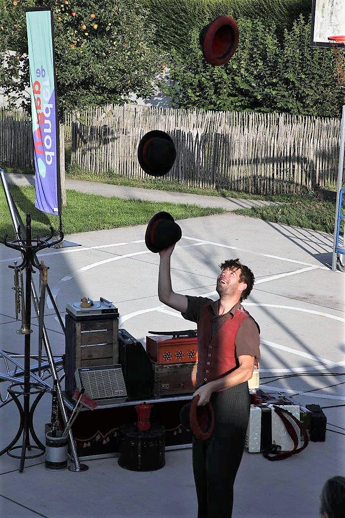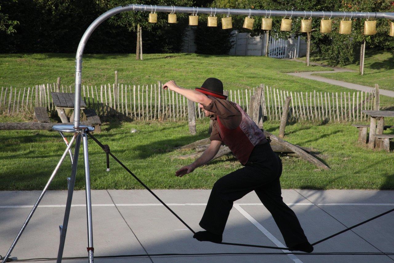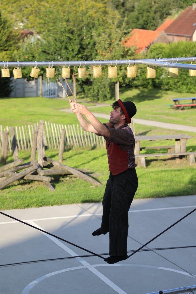 De voorstelling ‘MikMak’ van het RangPang Circus was een eenmansvoorstelling met instrumenten, balanceren en jongleren door Rein. Hij deed het helemaal alleen en wilde dit liefst ook allemaal zelf doen.