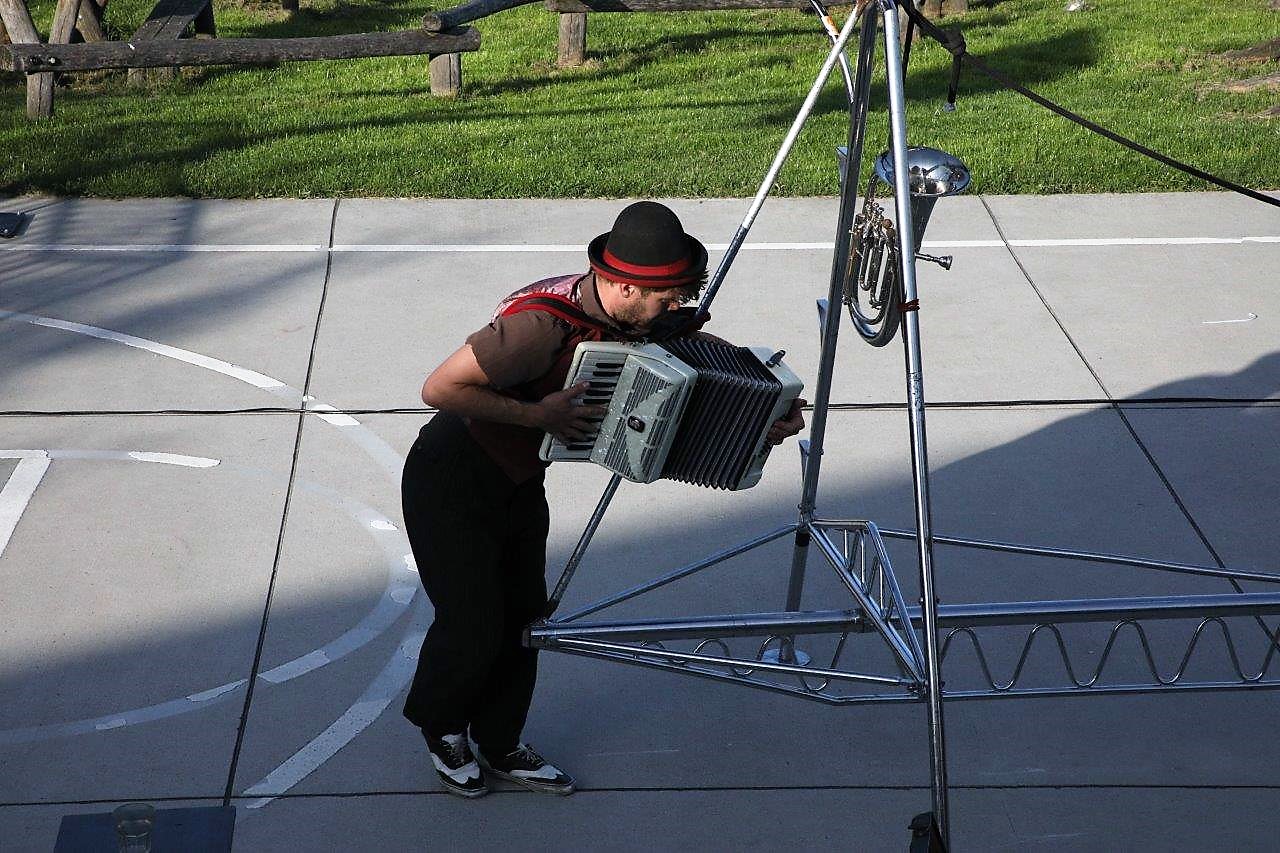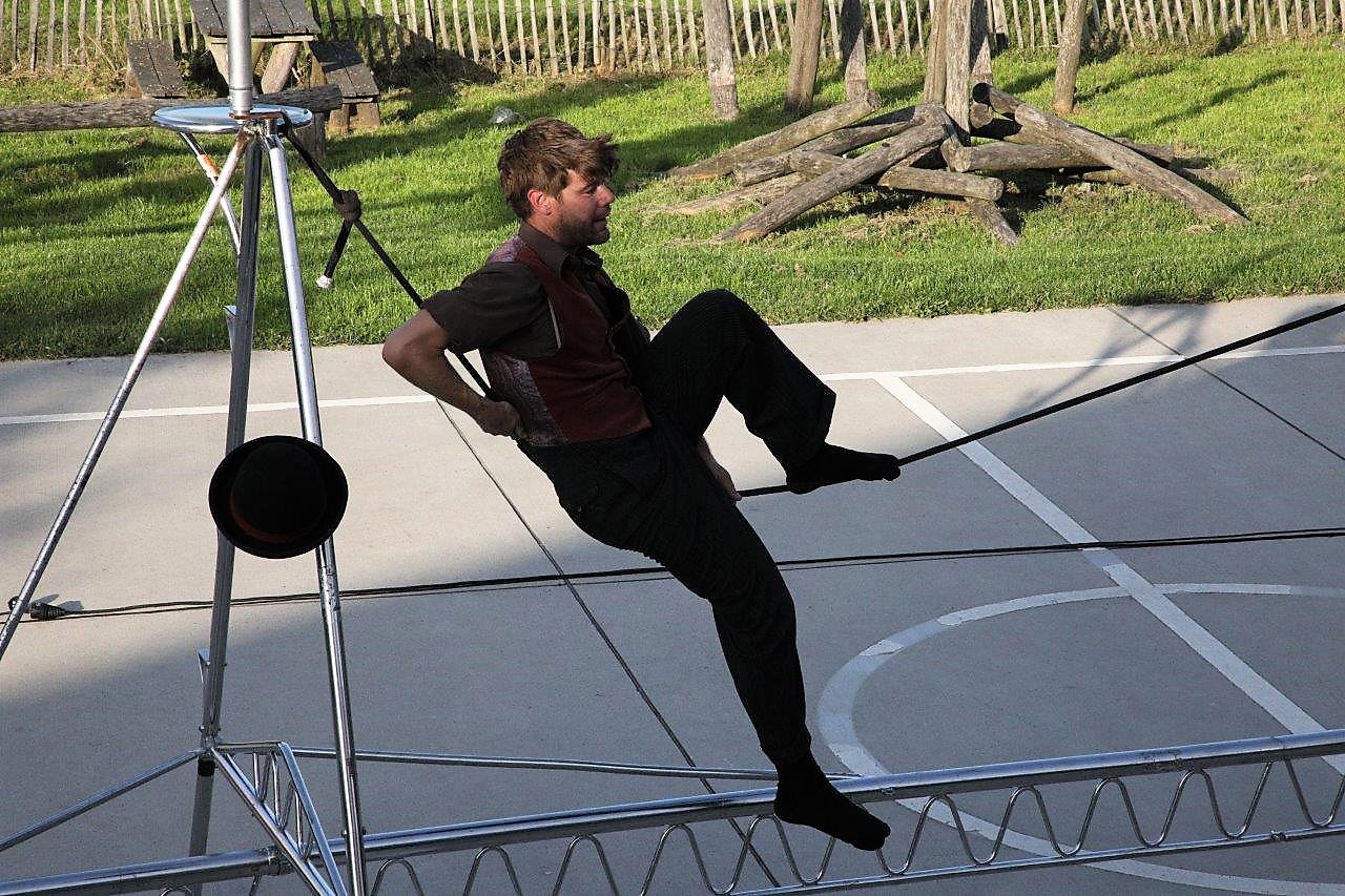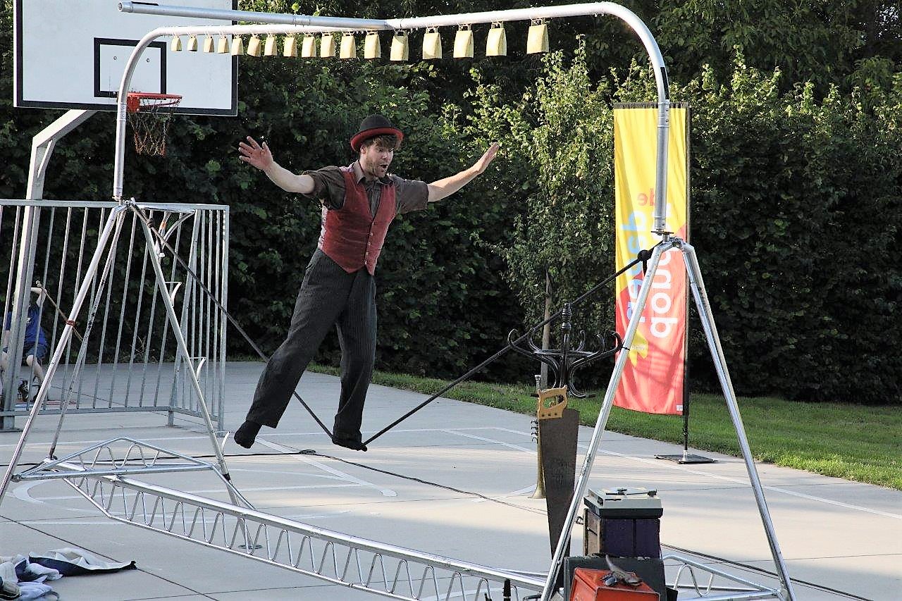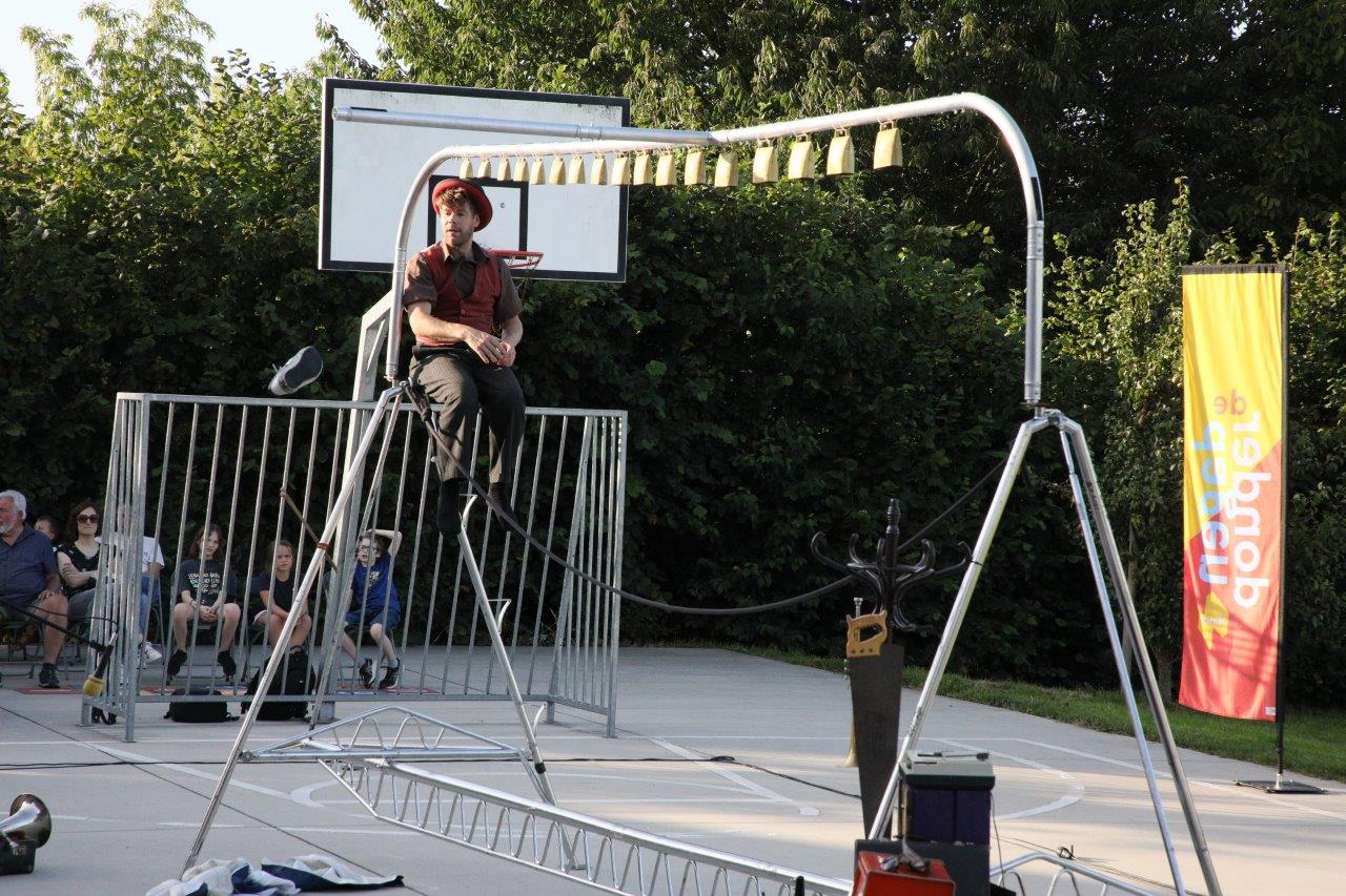 De voorstelling ‘MikMak’ van het RangPang Circus was een eenmansvoorstelling met instrumenten, balanceren en jongleren door Rein. Hij deed het helemaal alleen en wilde dit liefst ook allemaal zelf doen.