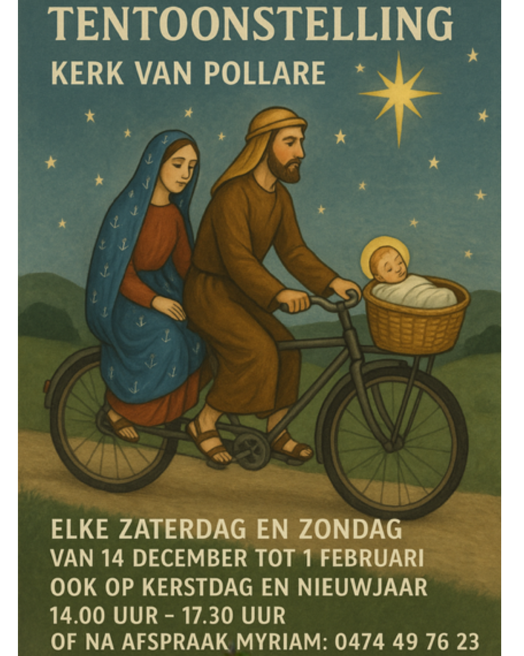 In dit jubeljaar van de Pelgrims van Hoop vormt hun reis een inspiratie. De tentoonstelling in de kerk van Pollare toont kerststallen, die dit onderweg-zijn zichtbaar maken en laat zien hoe de kerststal meer is dan een stilstaand tafereel. Het is een verhaal in beweging. Je ontdekt kerststallen die dat onderweg-zijn tastbaar maken, elk met een eigen stijl of invalshoek.