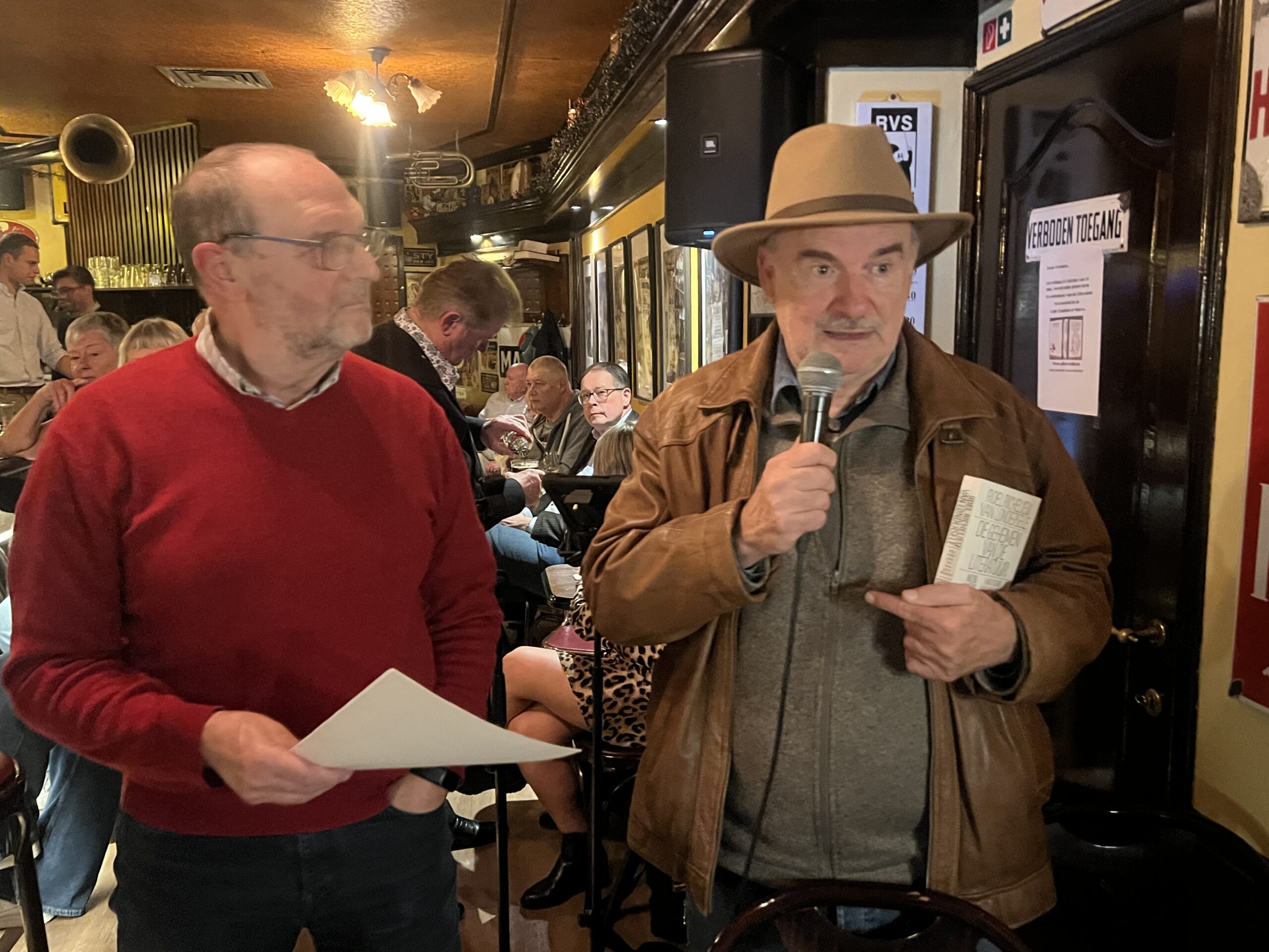 Na afloop van de presentatie in café Ragtime lieten oude bekenden van Roel hem graag een opdracht schrijven in hun exemplaar, dat je kunt kopen bij de betere boekhandel of online.