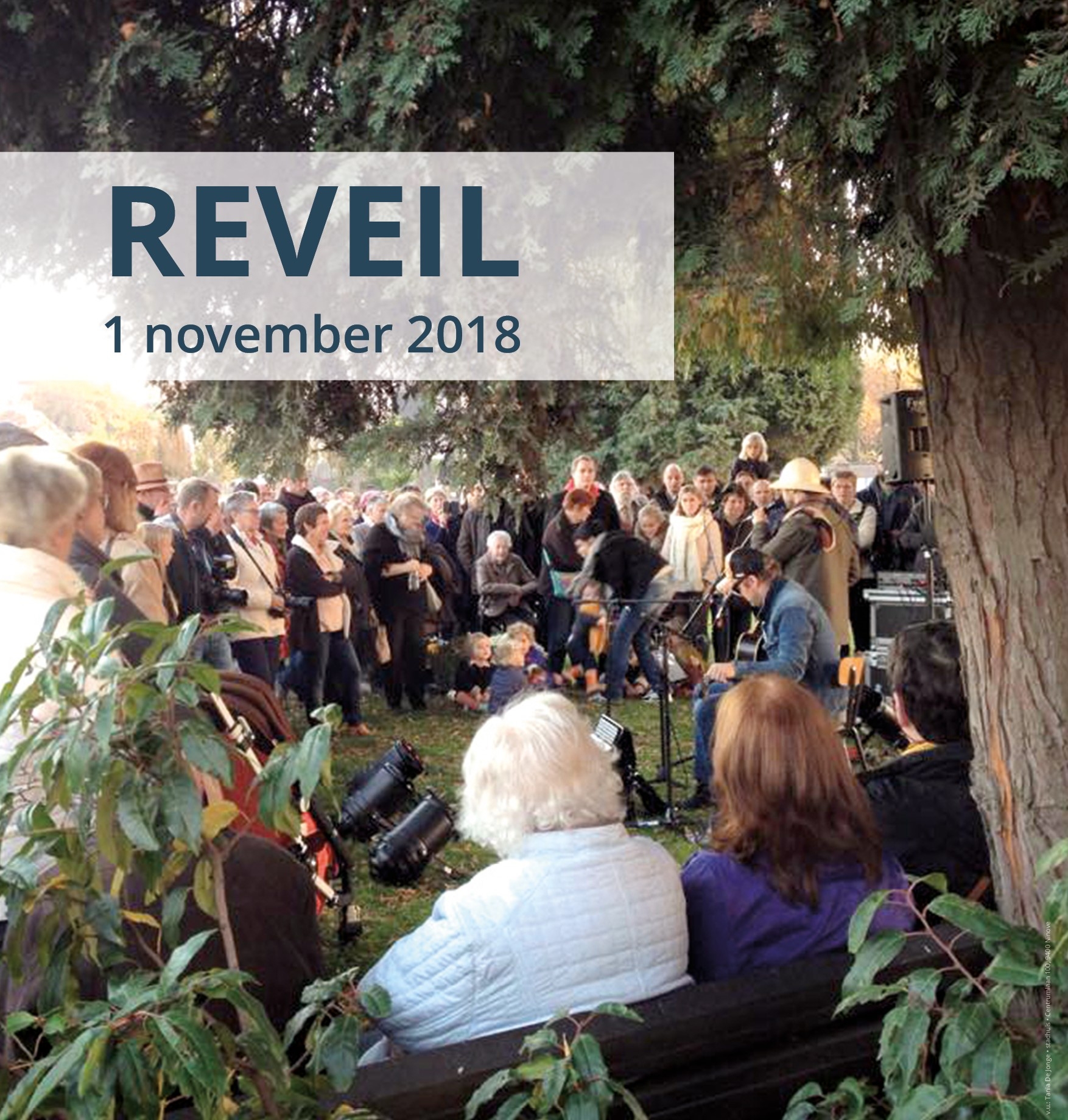 ‘Reveil’ is een eerbetoon aan de wortels van elke gemeente, met het diepste respect voor elke overtuiging. Bijna één op de drie Vlaamse gemeenten doet er aan mee. Op al die plekken dompelen muzikanten, fanfares, dichters en verhalenvertellers hun lokale begraafplaats onder in een warme gloed van ingetogen muziek, poëzie en lokale levensverhalen.
