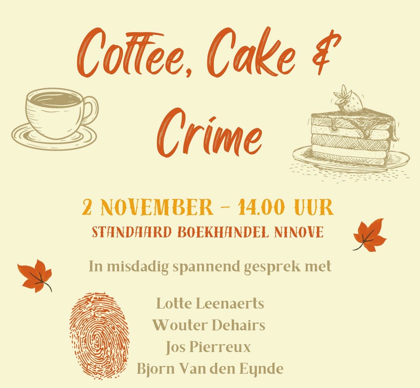 Hiervoor is inschrijven verplicht via sb.ninove@standaardboekhandel.be. De eerste vijf deelnemers ontvangen een leuke Halloweenbladwijzer. - Donderdag 2 november: ‘Coffee, Cake & Crime’ om 14 uur. Onder het genot van zoetigheden ga je in gesprek met misdaadauteurs Lotte Leenaerts, Wouter Dehairs, Jos Pierreux en Bjorn Van den Eynde. De meeste van hen maken nog kans op een literaire prijs, waaronder de Hercule Poirotprijs.
