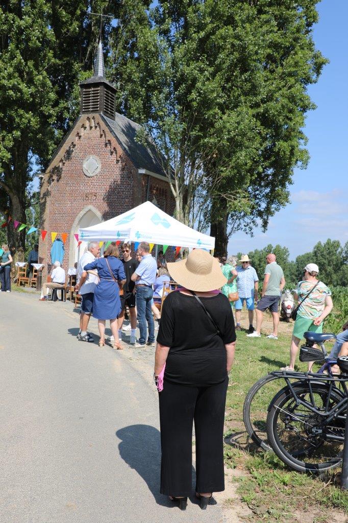 Daaraan voorafgaand haalde voorzitster Rita Scheerlinck herinneringen op aan de geschiedenis van de kapel en de processie, die zich afspeelde in het dorp en rond de kapel.