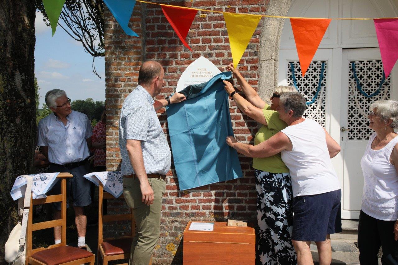 De schepen voor cultuur Werner Somers, de voorzitster en de leden van de dorpsraad onthulden voor die gelegenheid een gedenkplaat. Er was behoorlijk wat interesse van de dorpsbewoners voor deze onthulling.