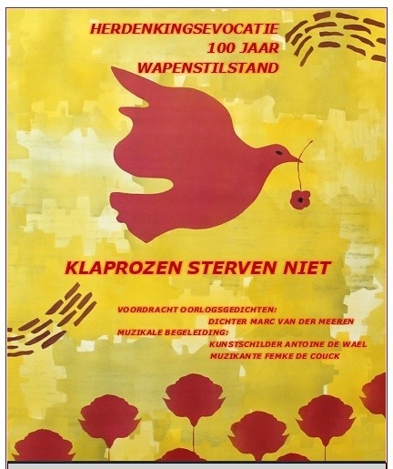 NINOVE – In het slotjaar van de herdenking ’14-’18 brengt dichter Marc Van der Meeren ‘Klaprozen sterven niet’. Deze herdenking heeft plaats vrijdagavond 09 november in de Abdijkerk. De opbrengst gaat naar de vzw Amon (Raveling Nederhasselt).