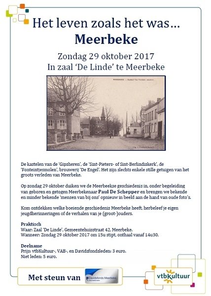 Na Ninove en Apelterre-Eichem duikt vtbKultuur Ninove de Meerbeekse geschiedenis in op zondag 29 oktober, onder begeleiding van geboren en getogen Meerbekenaar Paul De Schepper.