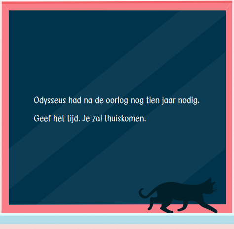 • Voorafgaand aan de Poëzieweek zal een illustrator het gedicht op jouw raam komen plaatsen met afwasbare stiften. Het gedicht moet zeker op het raam blijven staan gedurende de poëzieweek.