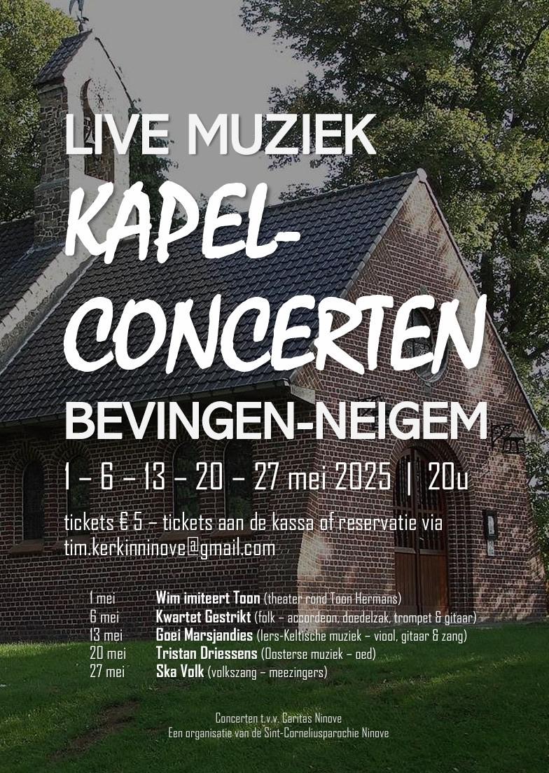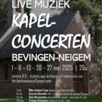 NEIGEM – De Sint-Corneliusparochie organiseert vanaf 1 mei vijf concerten in de kapel van Bevingen, aan de voet van het Neigembos.