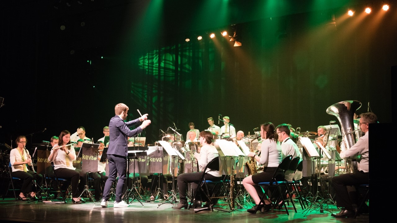 Onder leiding van dirigent Sander Kintaert hoor en zie je zowel het harmonieorkest als het jeugdorkest aan het werk.