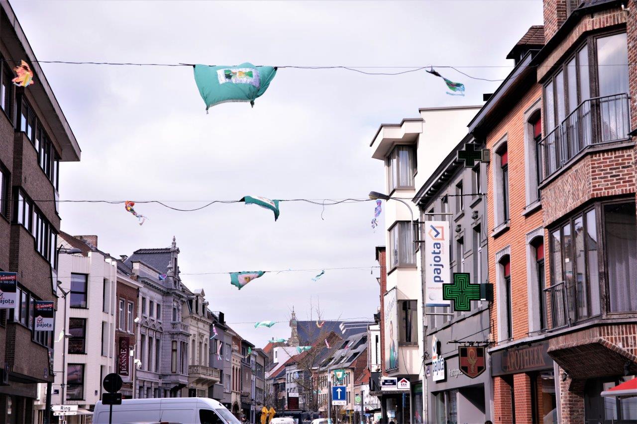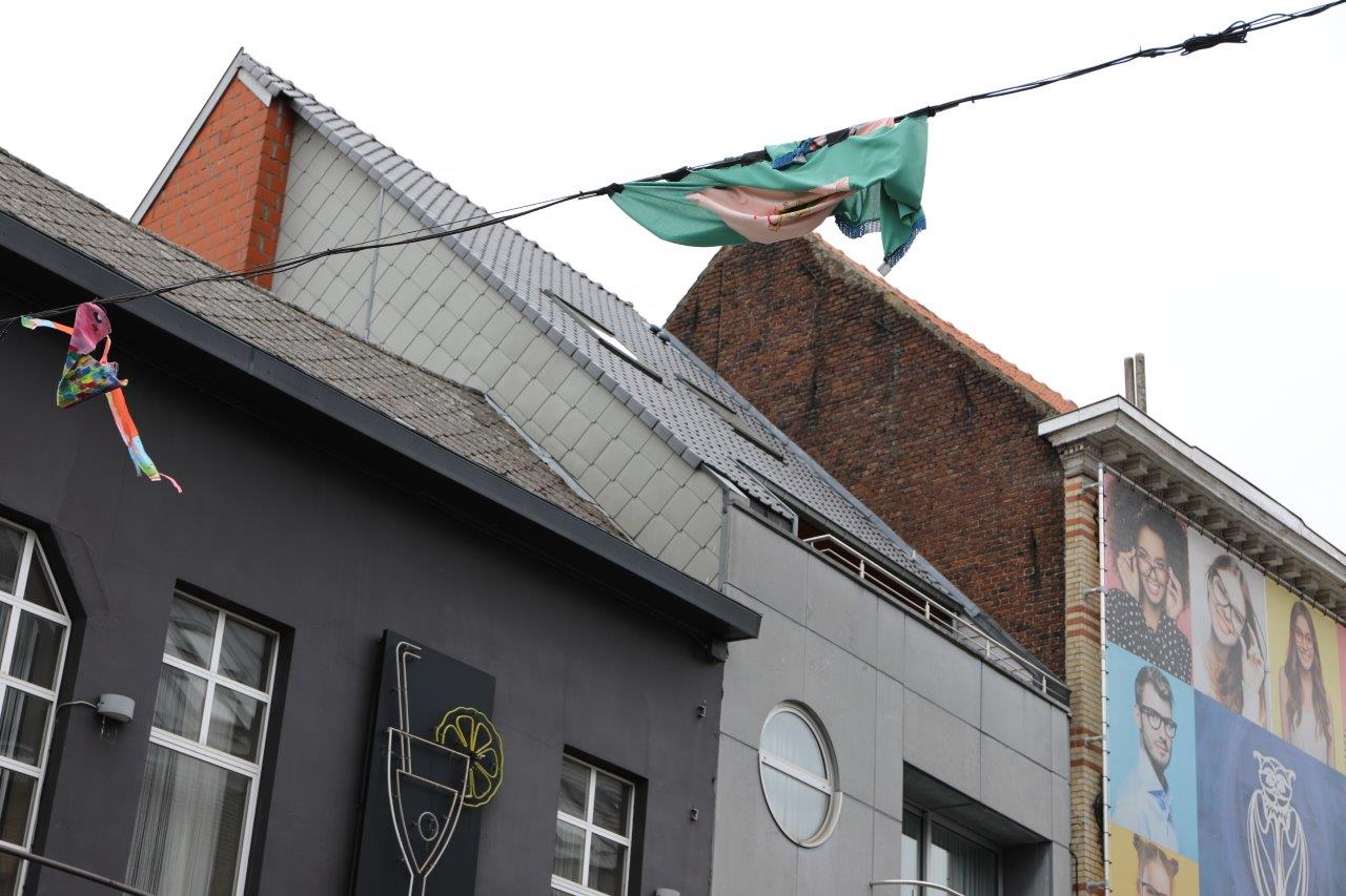 NINOVE – De leerlingen en leerkrachten van de Academie voor Beeldende en Audiovisuele Kunsten fleurden de winkelstraten op met vlaggen en windkois. Helaas besliste de wind er snel anders over.
