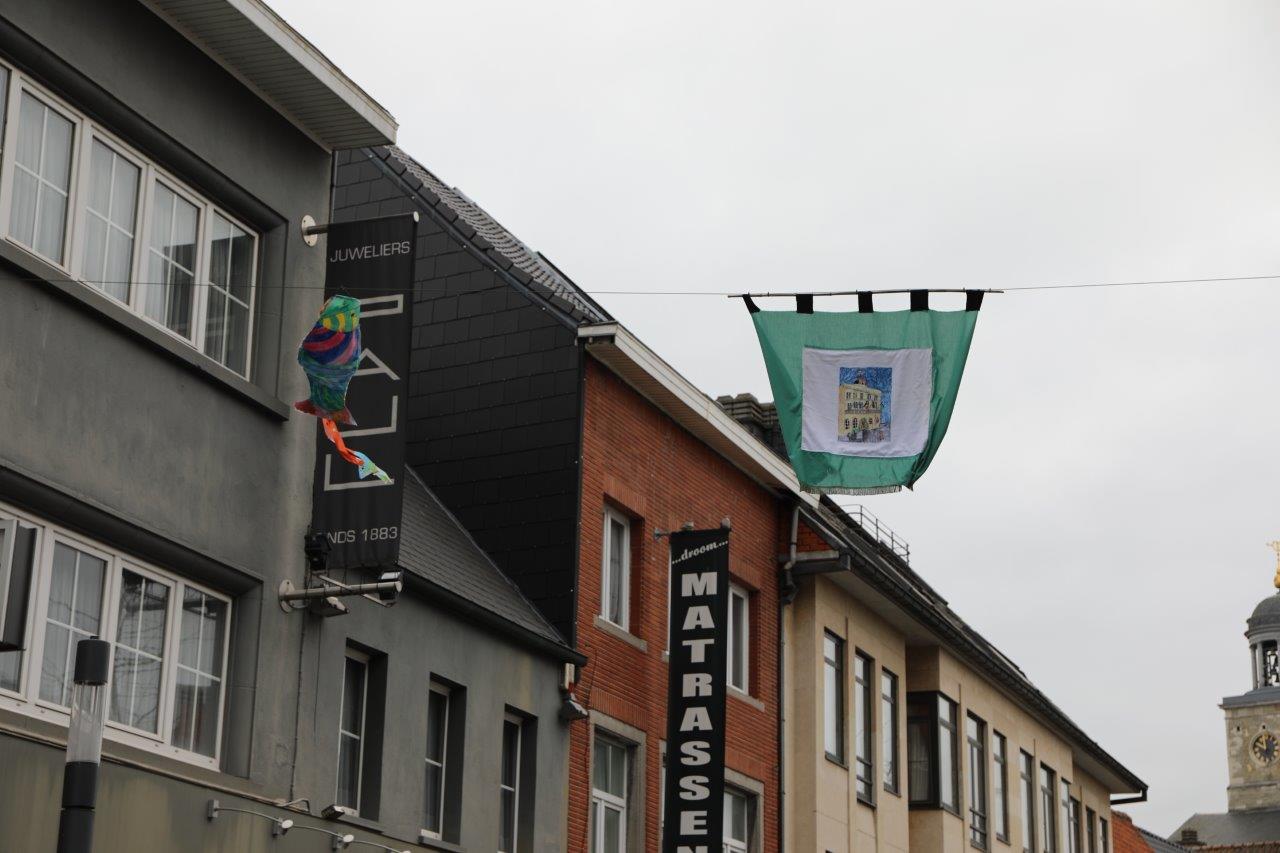 Deze week hingen de stadsdiensten in het stadscentrum windkois en vlaggen op. De eerste zijn kunstig gemaakte Japanse vissen, in de vlaggen zijn Ninoofse symbolen verwerkt. Je kunt ze zien hangen in de Burchtstraat, de Beverstraat, de Lavendelstraat, op het Oudstrijdersplein en de Graanmarkt.