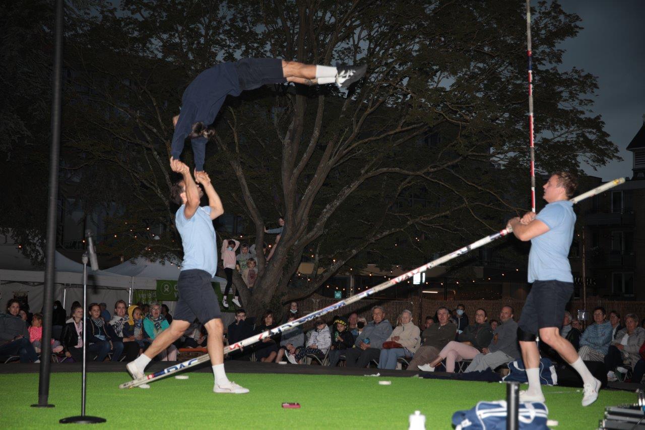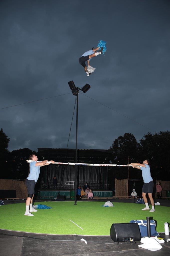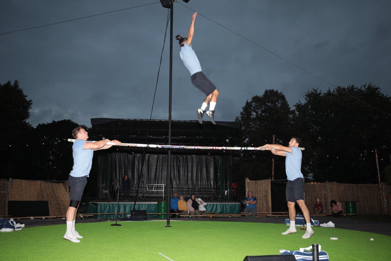 15ft6 staat voor 4,75m. Dat is de lengte van de ‘Russian bar’: een lange lat waarop twee acrobaten een andere tot wel 7 m hoog lanceren.