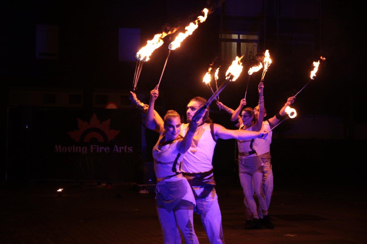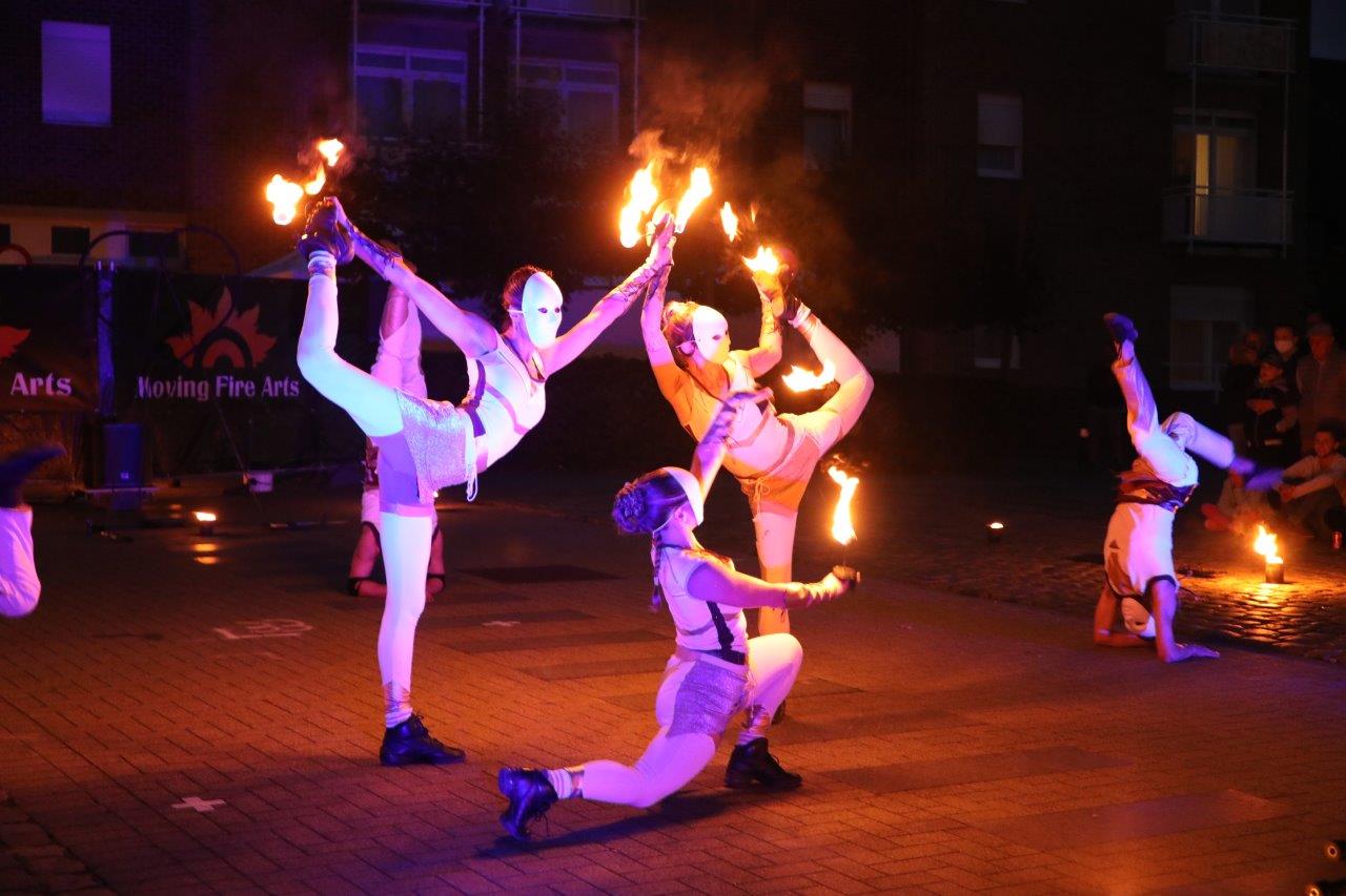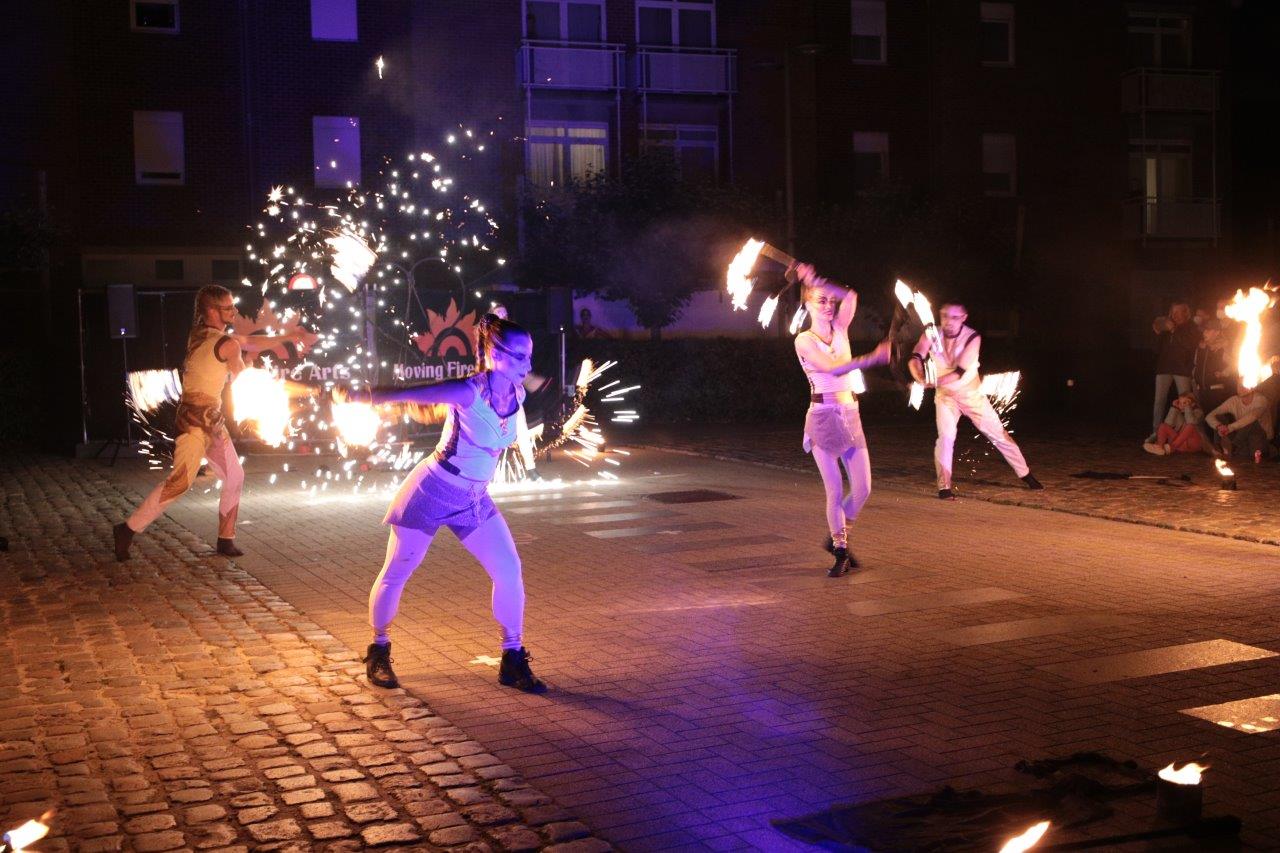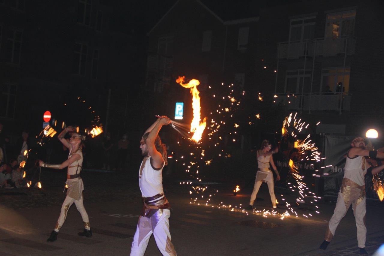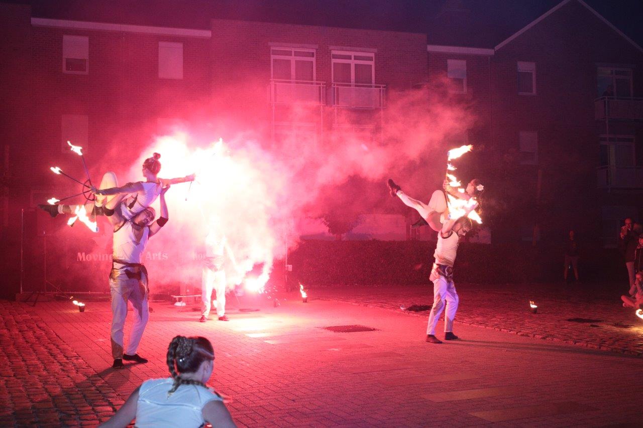 Moving Fire Arts bracht dan weer een vuurshow op het Twijnsterplein.