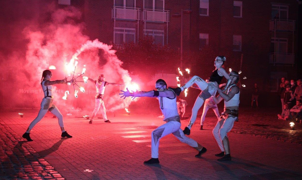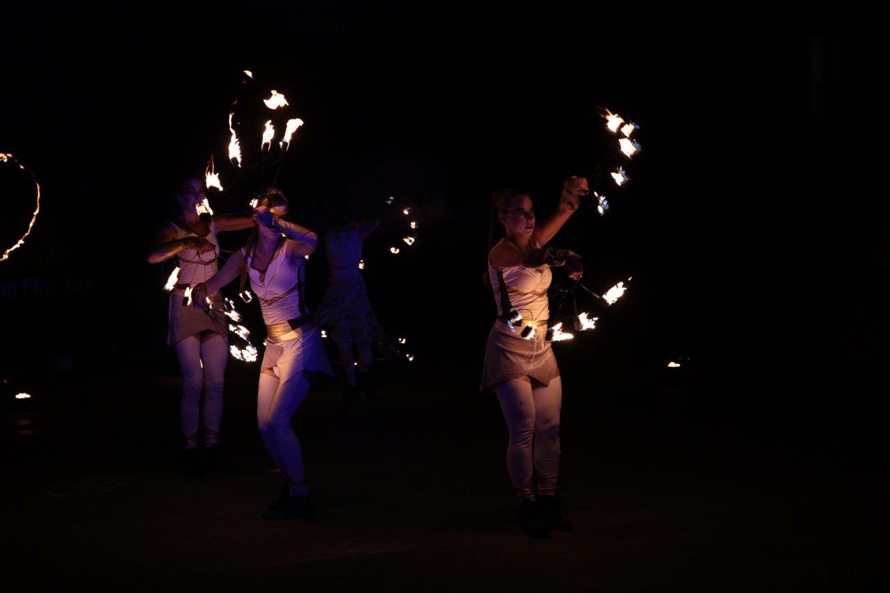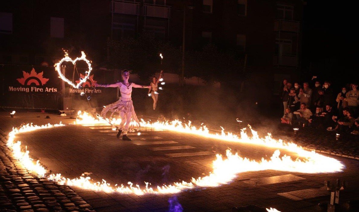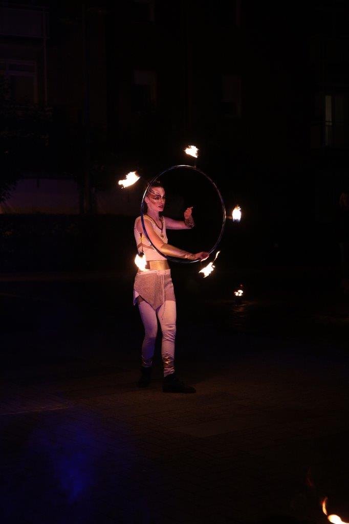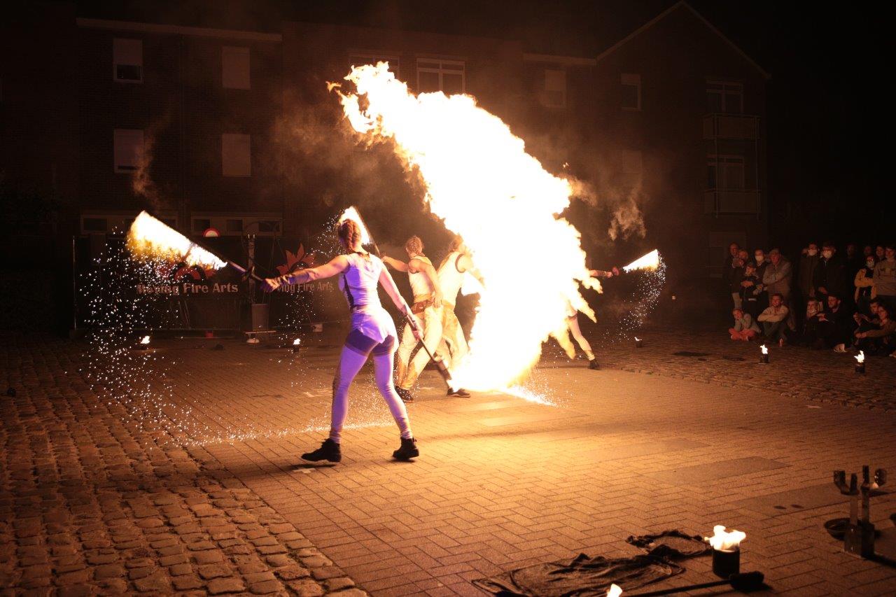 Moving Fire Arts bracht dan weer een vuurshow op het Twijnsterplein.