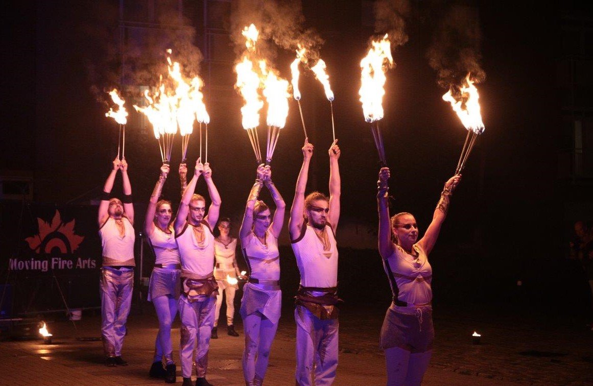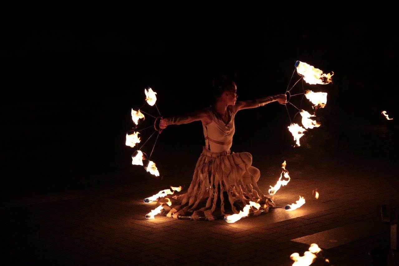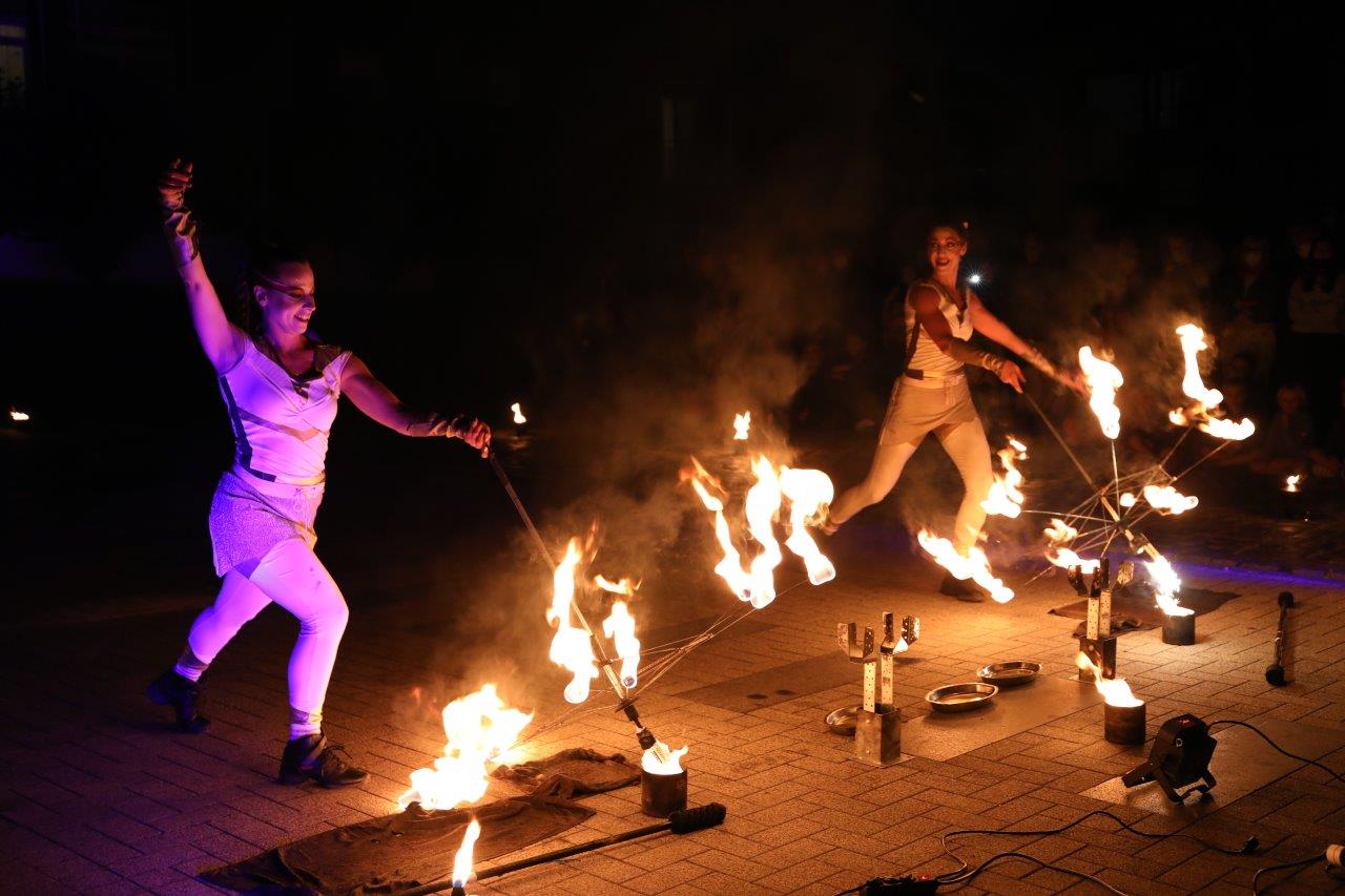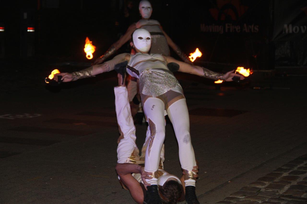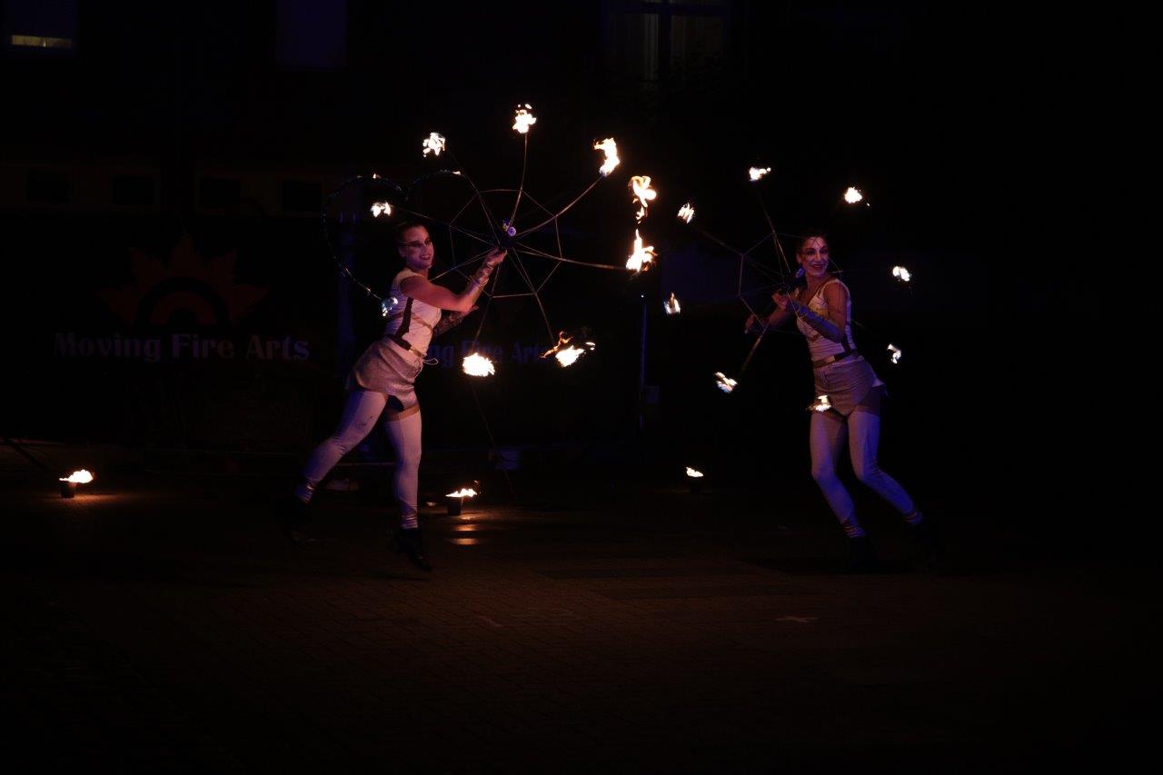 Moving Fire Arts bracht dan weer een vuurshow op het Twijnsterplein.