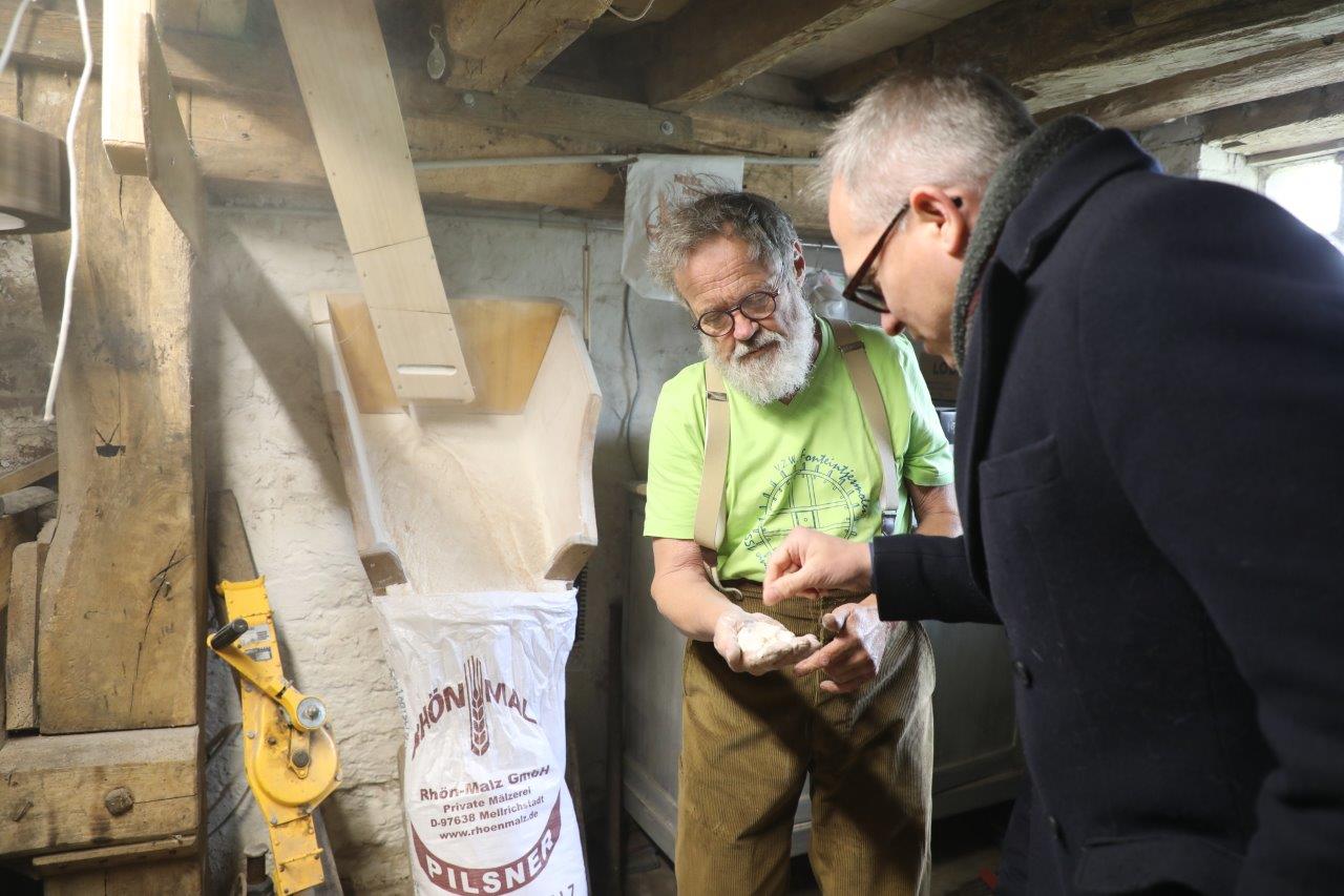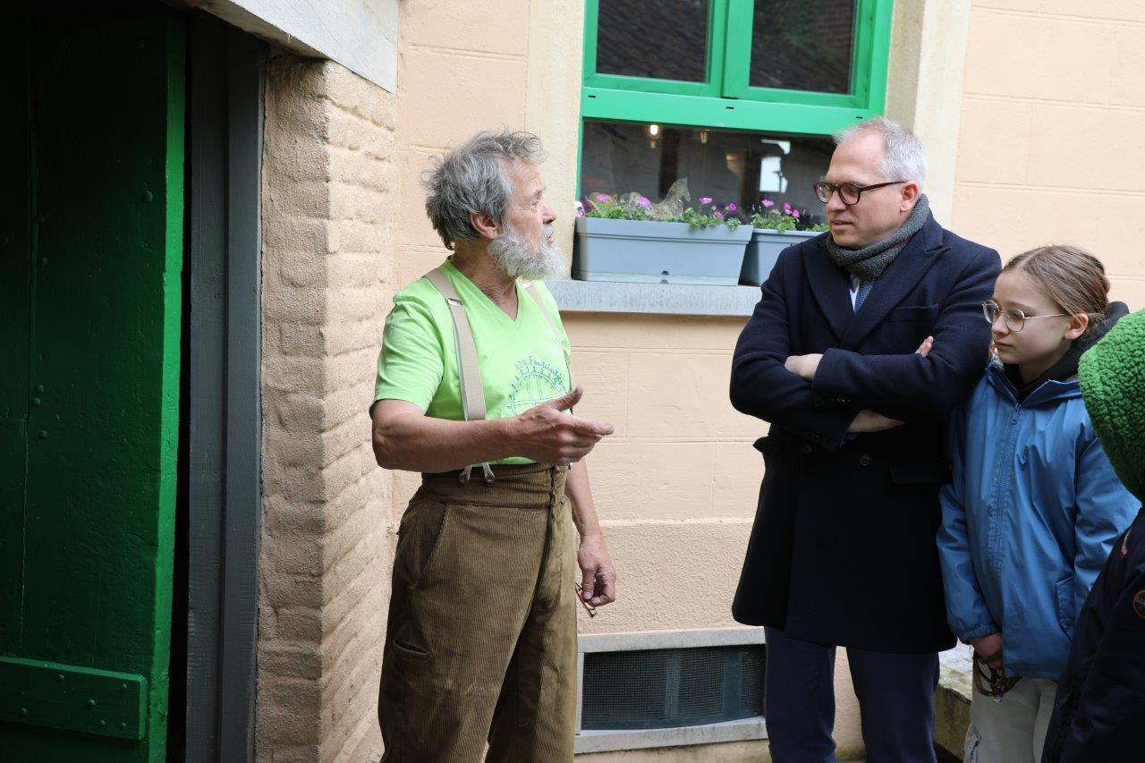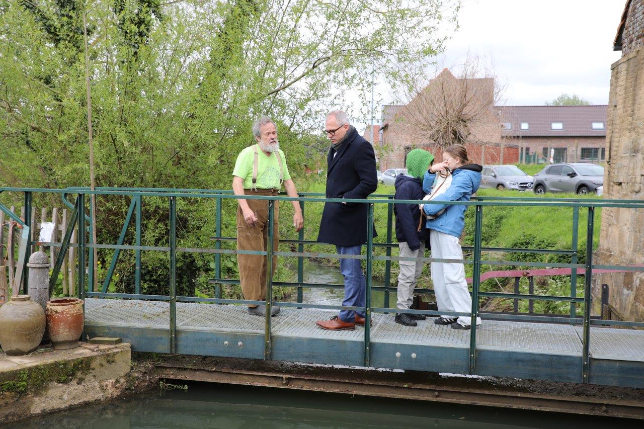 Molenaar Johan Bracke wijdde de minister in de werking, de geschiedenis en de restauratie van de watermolen aan Stenenbrug in. De Fonteintjesmolen heeft een rijke geschiedenis, die teruggaat tot minstens 1550, eerst als wolmolen, later als zaadstampmolen en vanaf 1764 als korenmolen. In 1973 is de volledige Fonteintjesmolen-site erkend als beschermd erfgoed en in 2003 als stads- en dorpsgezicht, vanwege de historische en industrieel-archeologische waarde. De molen bleef in bedrijf tot 1986.