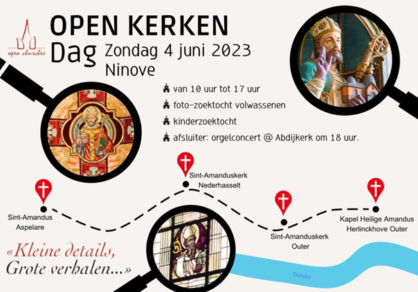 De Open Kerkendag volgt de voetsporen van de heilige Amandus in onze regio. Starten of eindigen kan in elk van de drie open kerken tussen 10 en 17 uur.