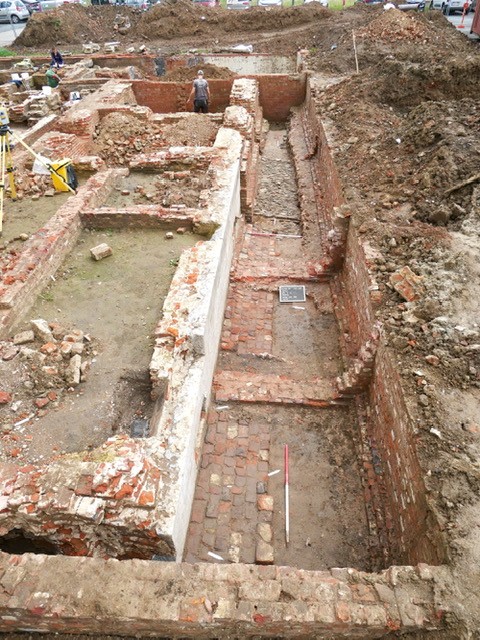 Een groot deel van de gevonden funderingen en sporen staat in verband met de 18de-eeuwse hospitaalgebouwen. Naast de muurresten is ook een pad blootgelegd, dat langs het gebouw liep. Dieper gelegen tussen de muren van het hospitaal bevinden zich goed bewaarde resten van oudere, afgebrande gebouwen in vakwerk met daartussen een kasseiwegje. Dergelijke steegjes dienden onder meer om de verspreiding van brand tegen te gaan.
