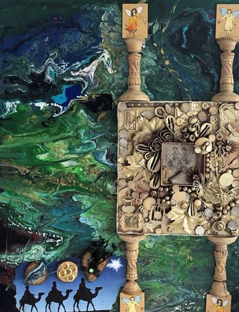 Een van die kunstenaars is Sandra de Leener. Zij slaagt er mooi in om het thema vakkundig te benaderen en combineert daarbij een schilderij met een collage. “Mijn schilderij is puur handwerk, volledig gemaakt van gerecupereerd materiaal. Ik ben er wel trots op.”