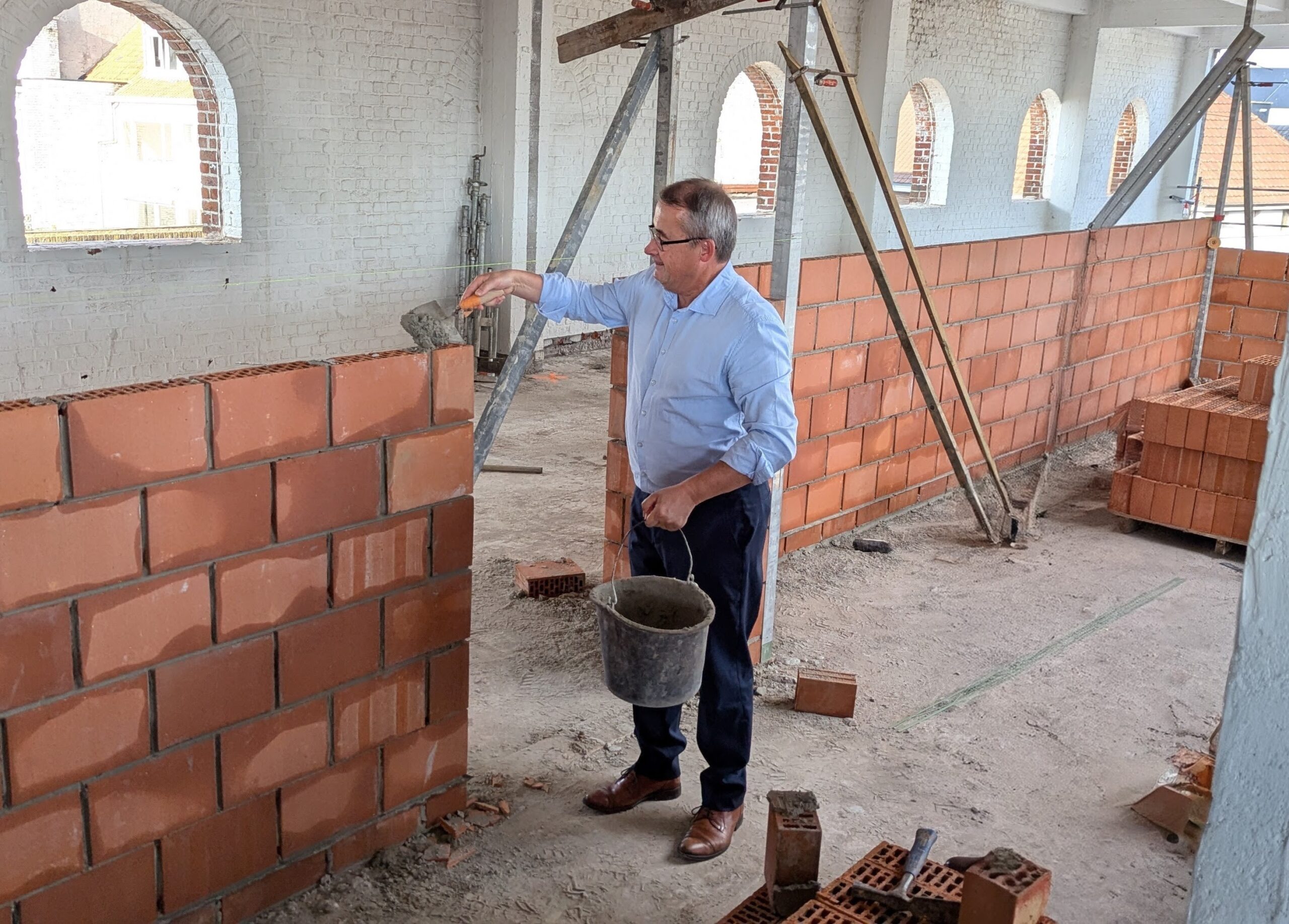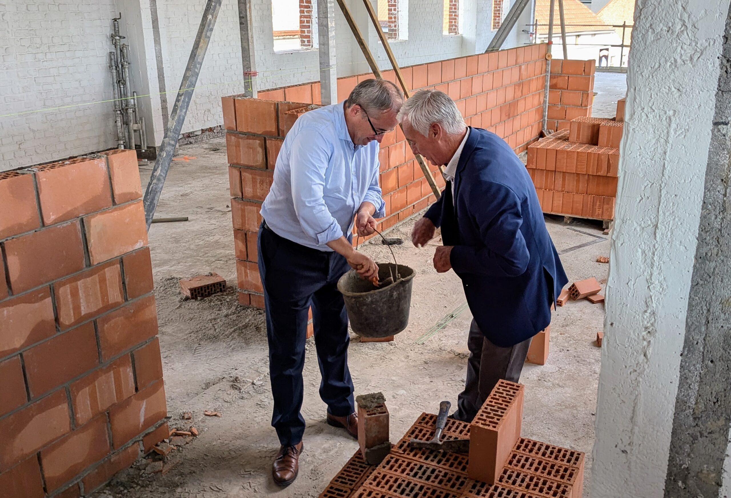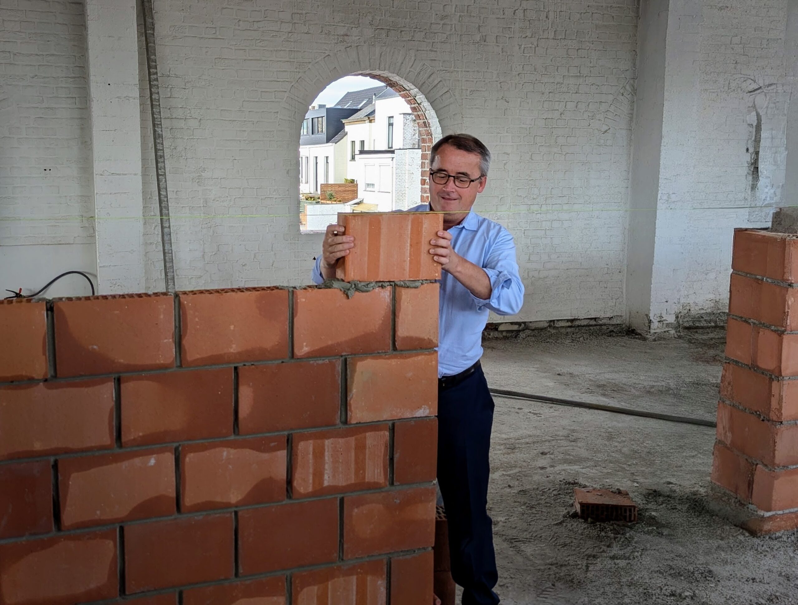 NINOVE – De schepen voor cultuur Henri Evenepoel metste vrijdag 4 oktober zorgvuldig de eerste steen op de voormalige Sigtay-site. Meteen de start van de heropbouw van de nieuwe bibliotheek.