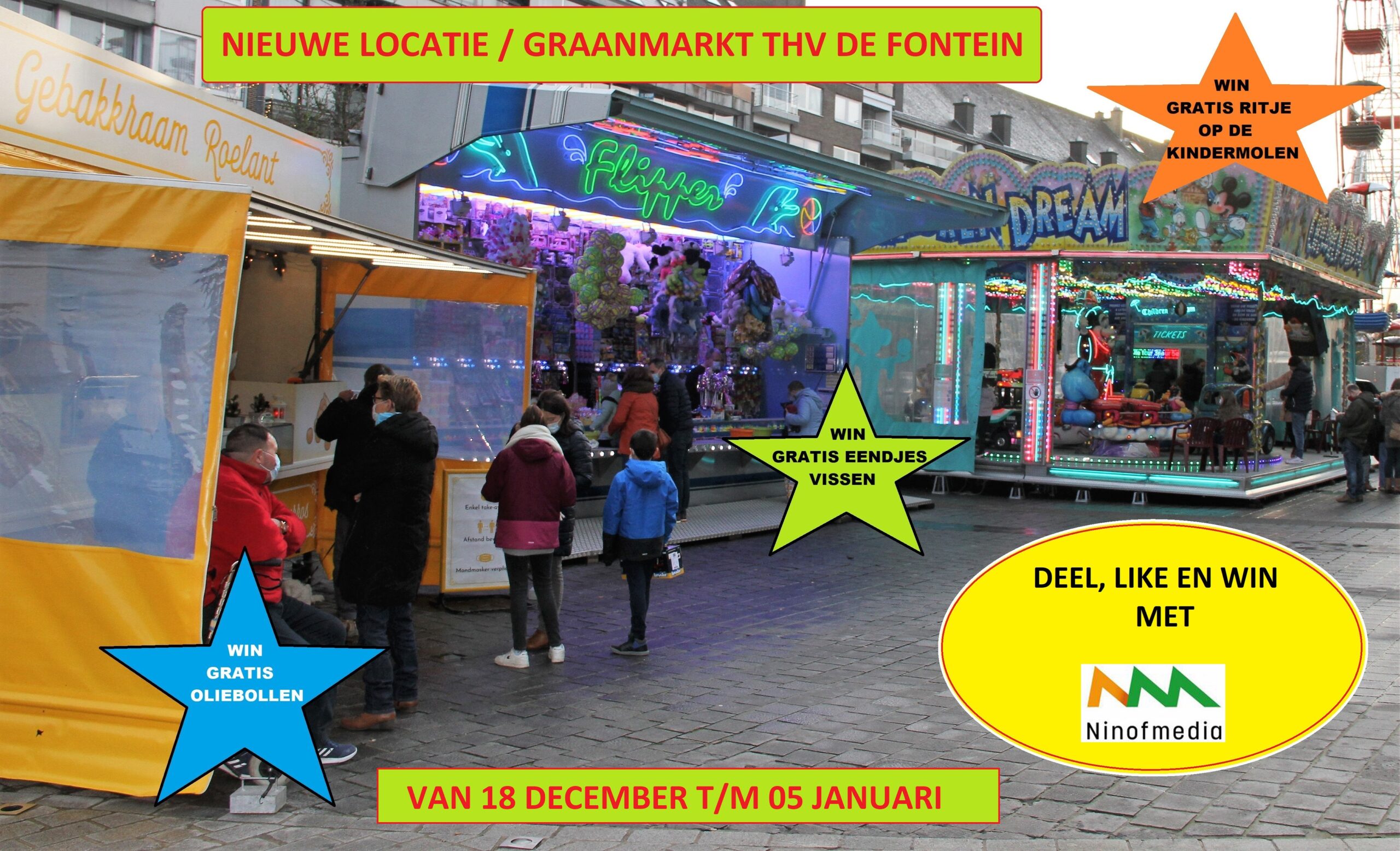 Enkele kermisattracties staan opgesteld op de Graanmarkt, ter hoogte van de grote kerstboom aan de fontein. Dit is een nieuwe locatie, in het verleden stonden ze opgesteld aan het Niniaplein.