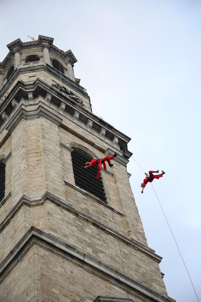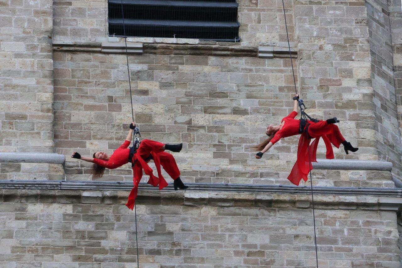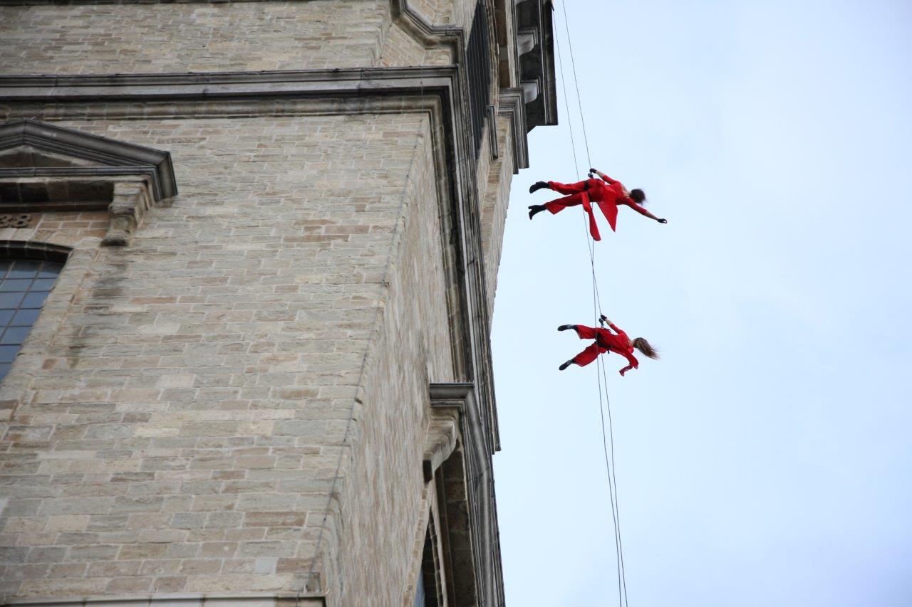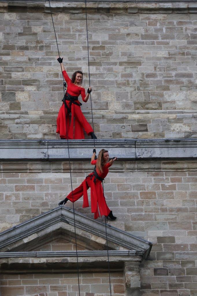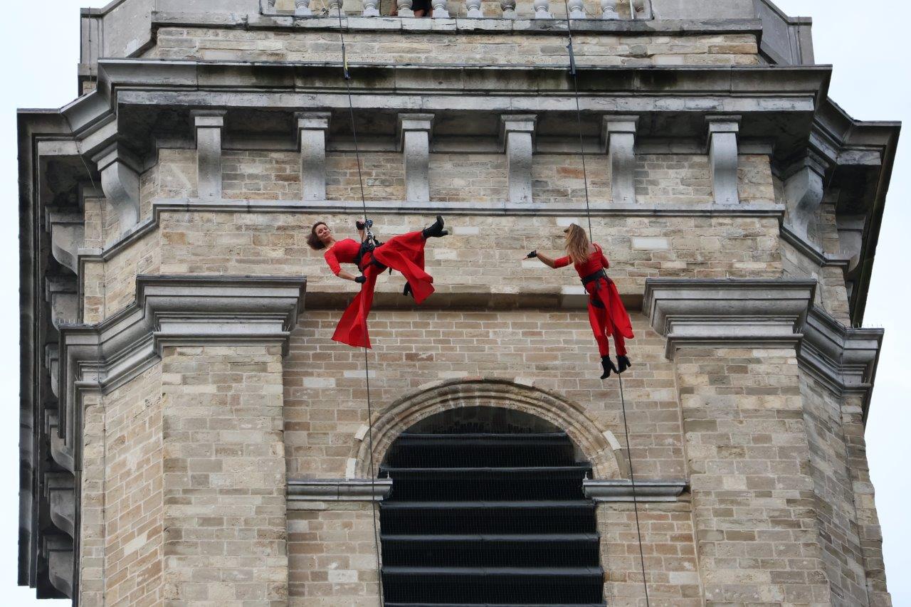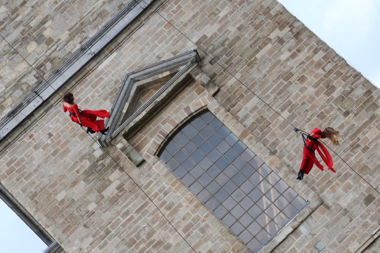 Op het grasplein aan de Abdijkerk mocht Bencha Theater aantreden met hun indrukwekkende show Vertical Walldance, een dans van 90 graden. Gehuld in rode gewaden voerden de twee artiesten hun dans op aan de gevel van de prachtige kerk.