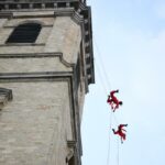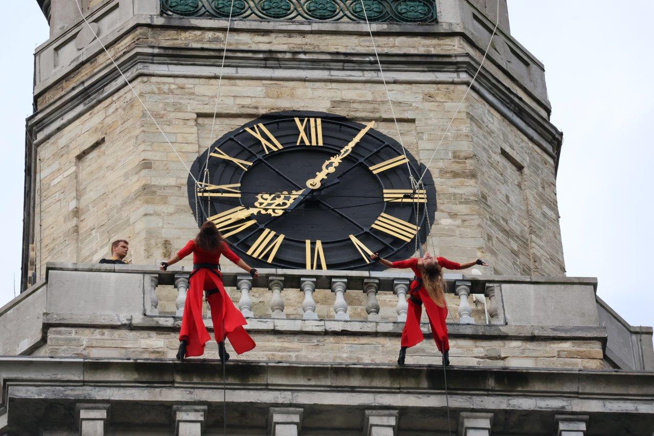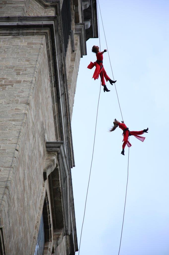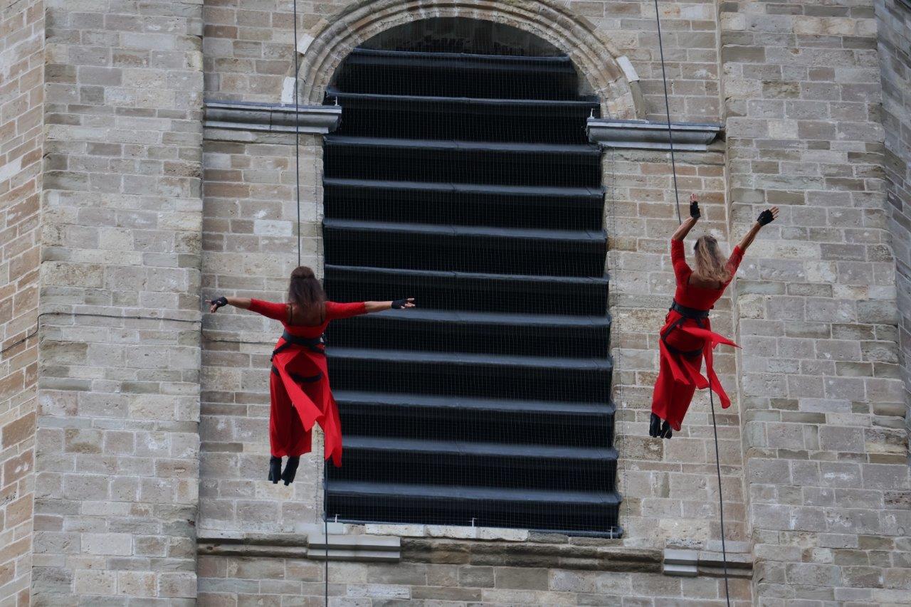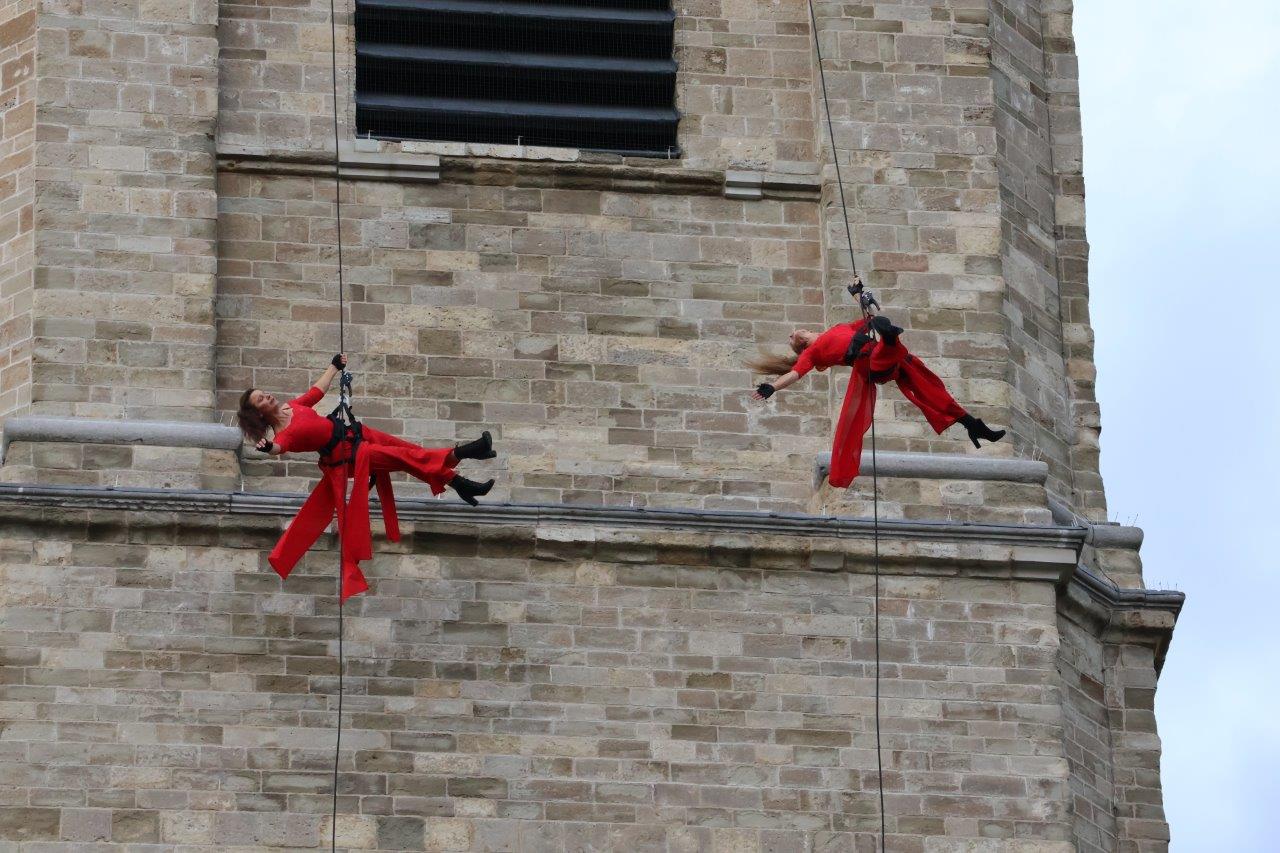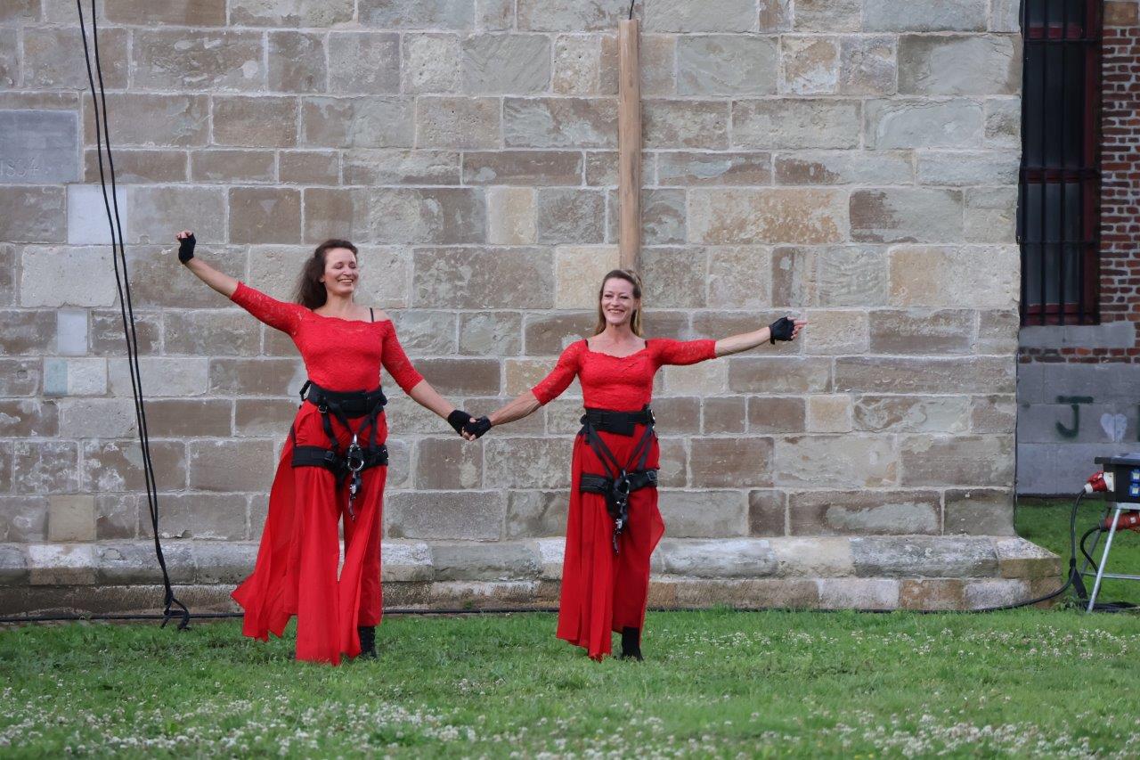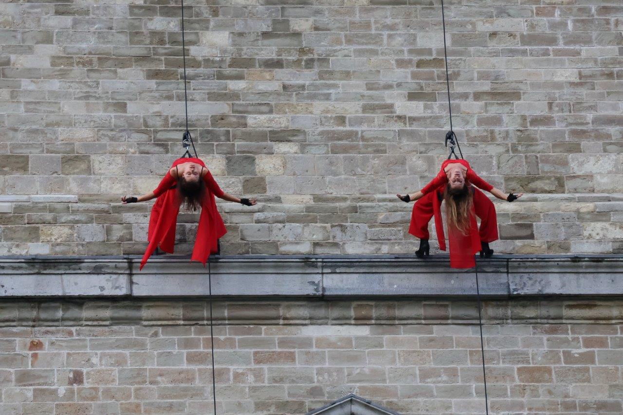 Op het grasplein aan de Abdijkerk mocht Bencha Theater aantreden met hun indrukwekkende show Vertical Walldance, een dans van 90 graden. Gehuld in rode gewaden voerden de twee artiesten hun dans op aan de gevel van de prachtige kerk.