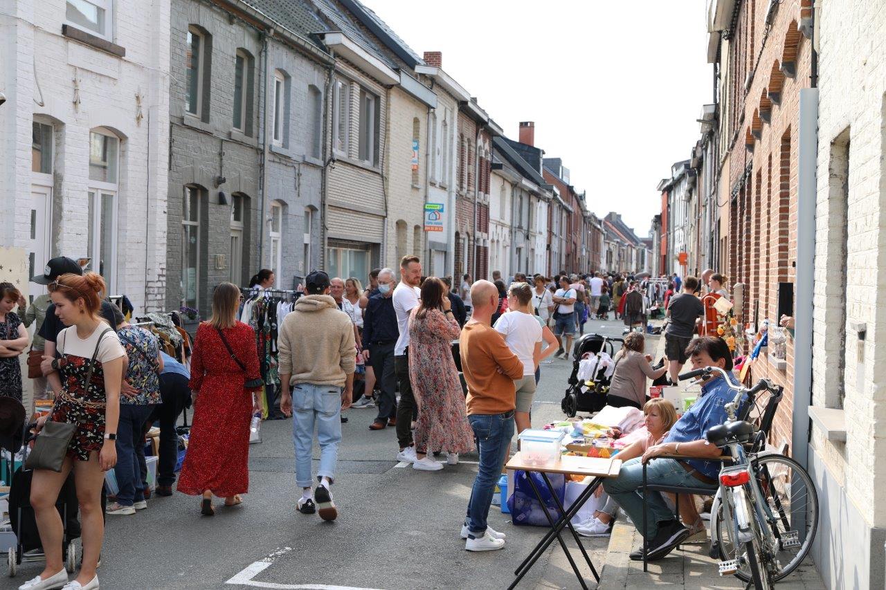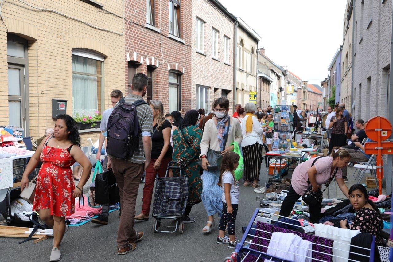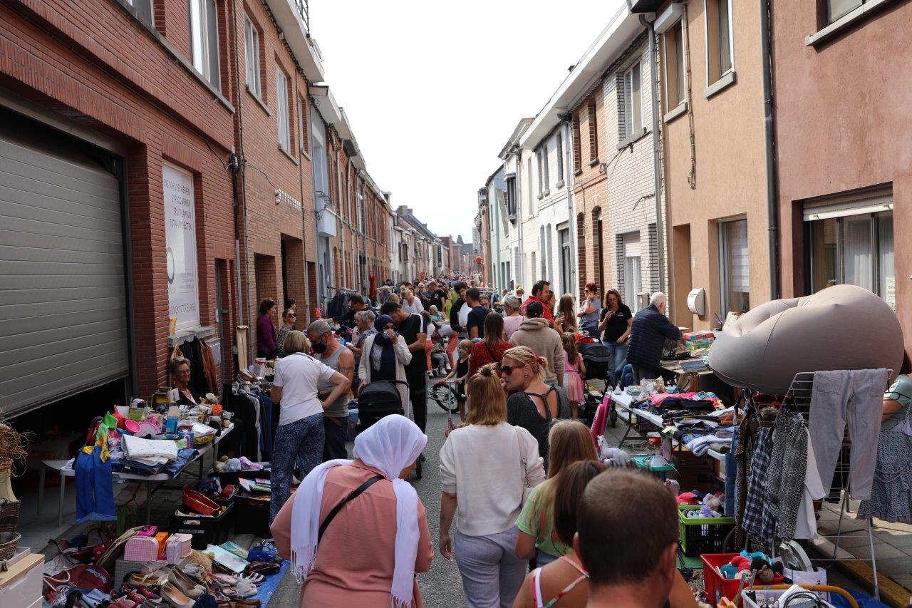 De vele bezoekers en kopers van tweedehandsspullen moesten vaak dringen om door te geraken.