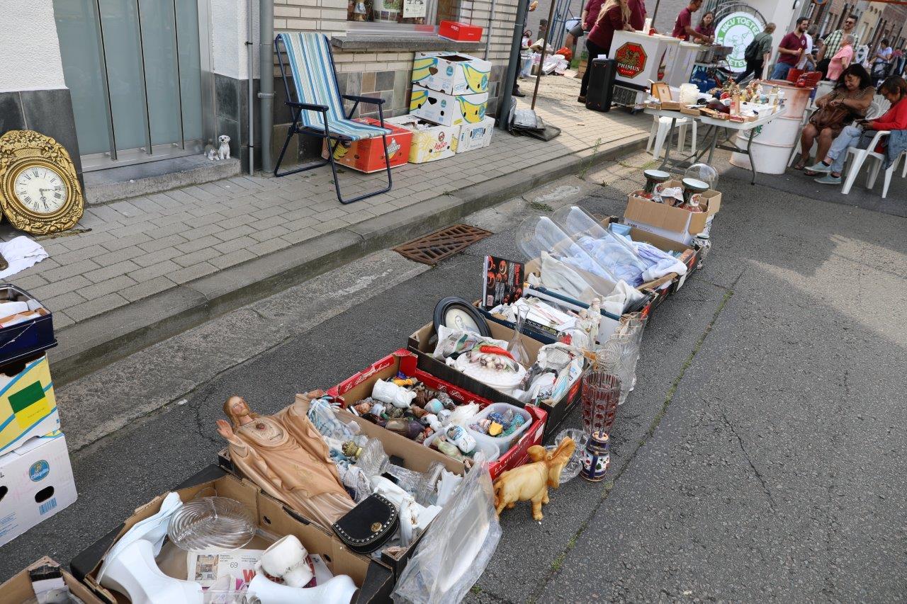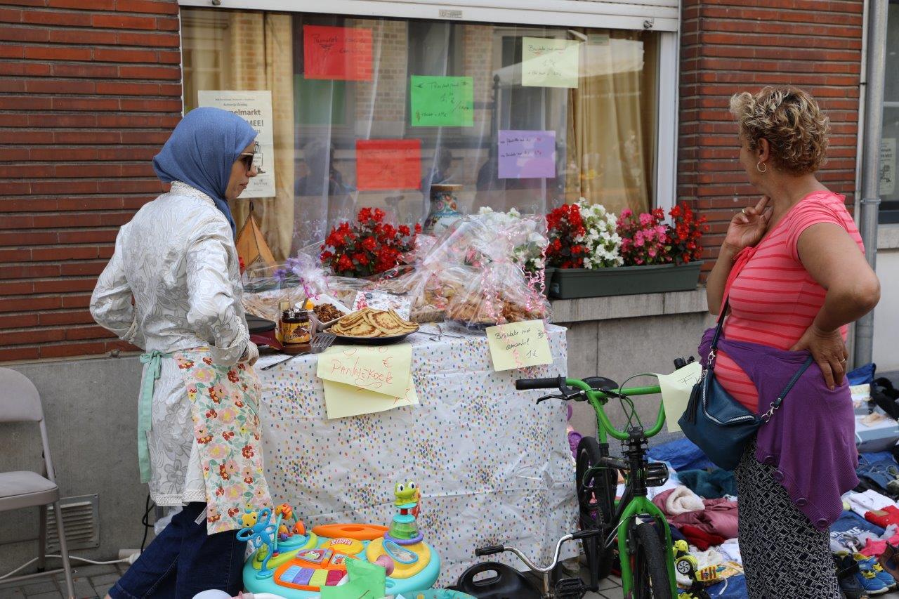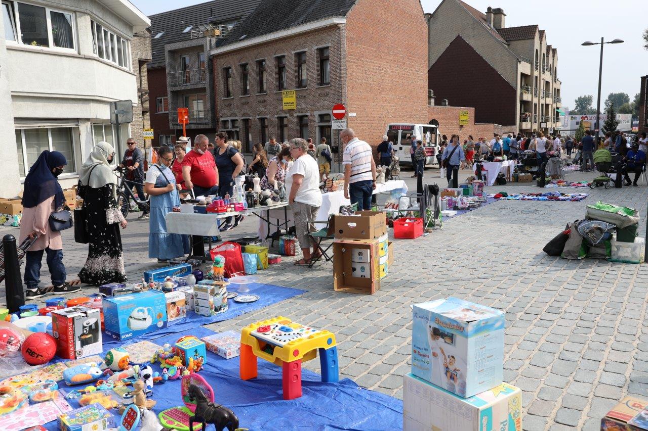De vele bezoekers en kopers van tweedehandsspullen moesten vaak dringen om door te geraken.