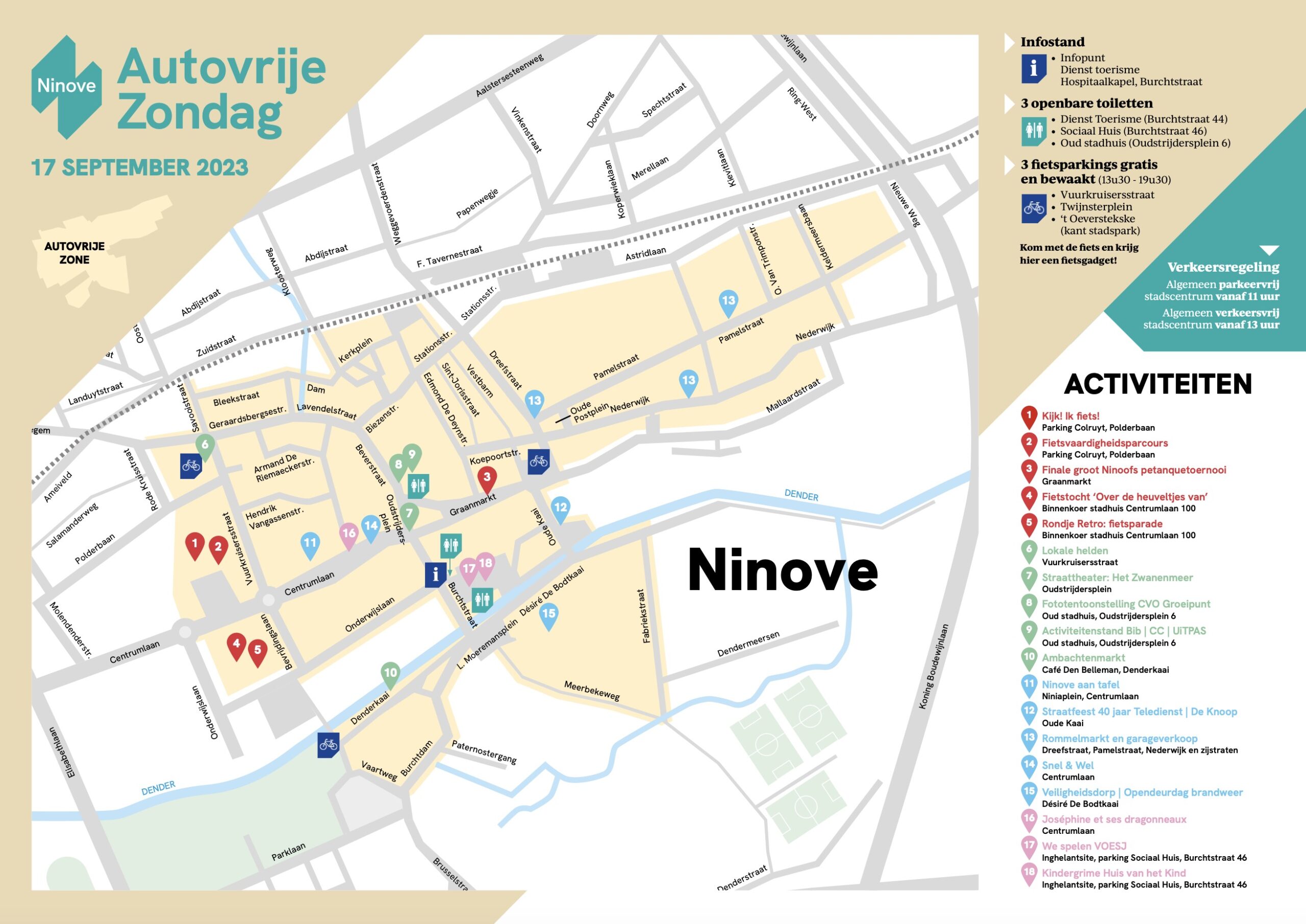 Info: alle activiteiten en de verkeersregeling vind je op autovrije zondag Ninove’Autovrije zone 2023.