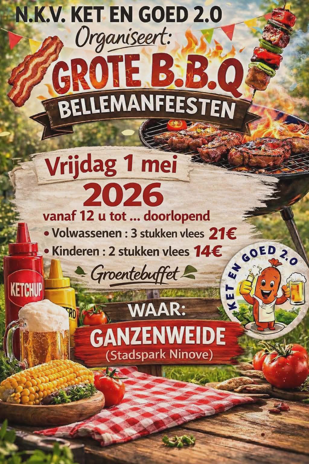 NKV Ket en Goed 2.0 staat in voor de barbecue. Jan Trompet is er van ’s middags bij, nadien treden heel wat Ninoofse zangers en groepen aan.