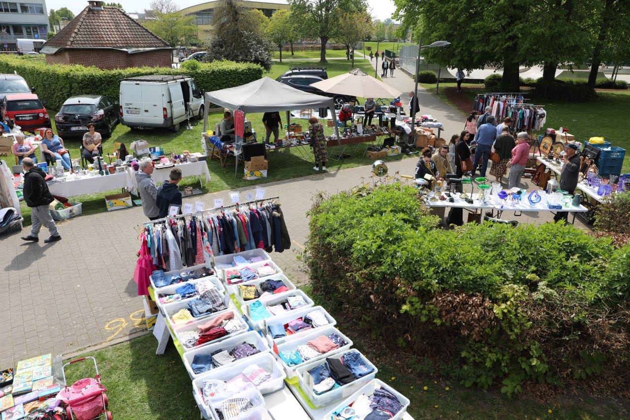 De feestelijke zondag startte ‘s ochtends al om 9 uur met een rommelmarkt op de Denderkaai, de Vaartweg en het Dr. Hemerijckxplein. In totaal stonden daar een 150-tal kraampjes opgesteld.