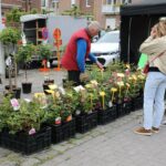 Je ontdekte op de nieuwe locatie, het plein aan de Twijnster, een uitgebreid assortiment één- en meerjarige bloeiende planten in alle kleuren van de regenboog.