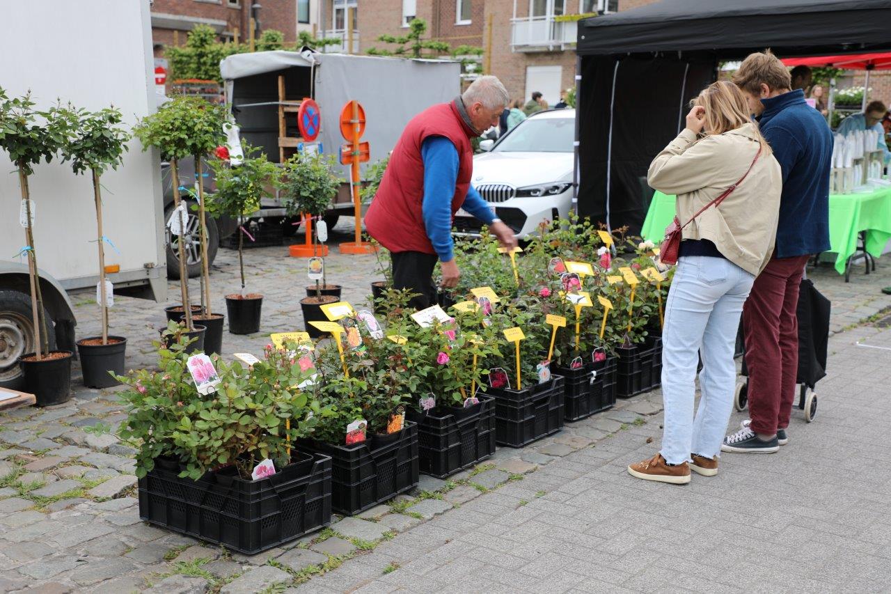 Honderden bloementjes werden aan de man (m/v/x) gebracht tijdens deze bloemenmarkt, georganiseerd door de dienst lokale economie, ook nu weer met een gevarieerd aanbod. Ze werkten hiervoor terug samen met lokale bloemenverkopers voor de verscheidenheid van de bloemenkramen.