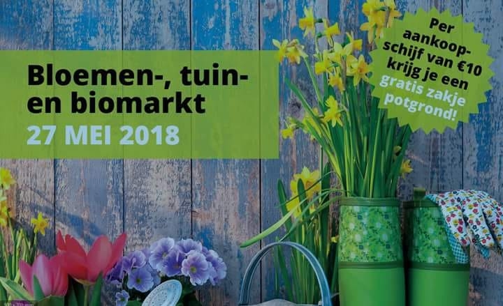 Bloemen-, tuin- en biomarkt met een ruim aanbod aan één- en meerjarige bloeiende planten, kruiden, groenten- en fruitplanten, waterplanten & bio- en artisanale streekproducten. Per aankoopschijf