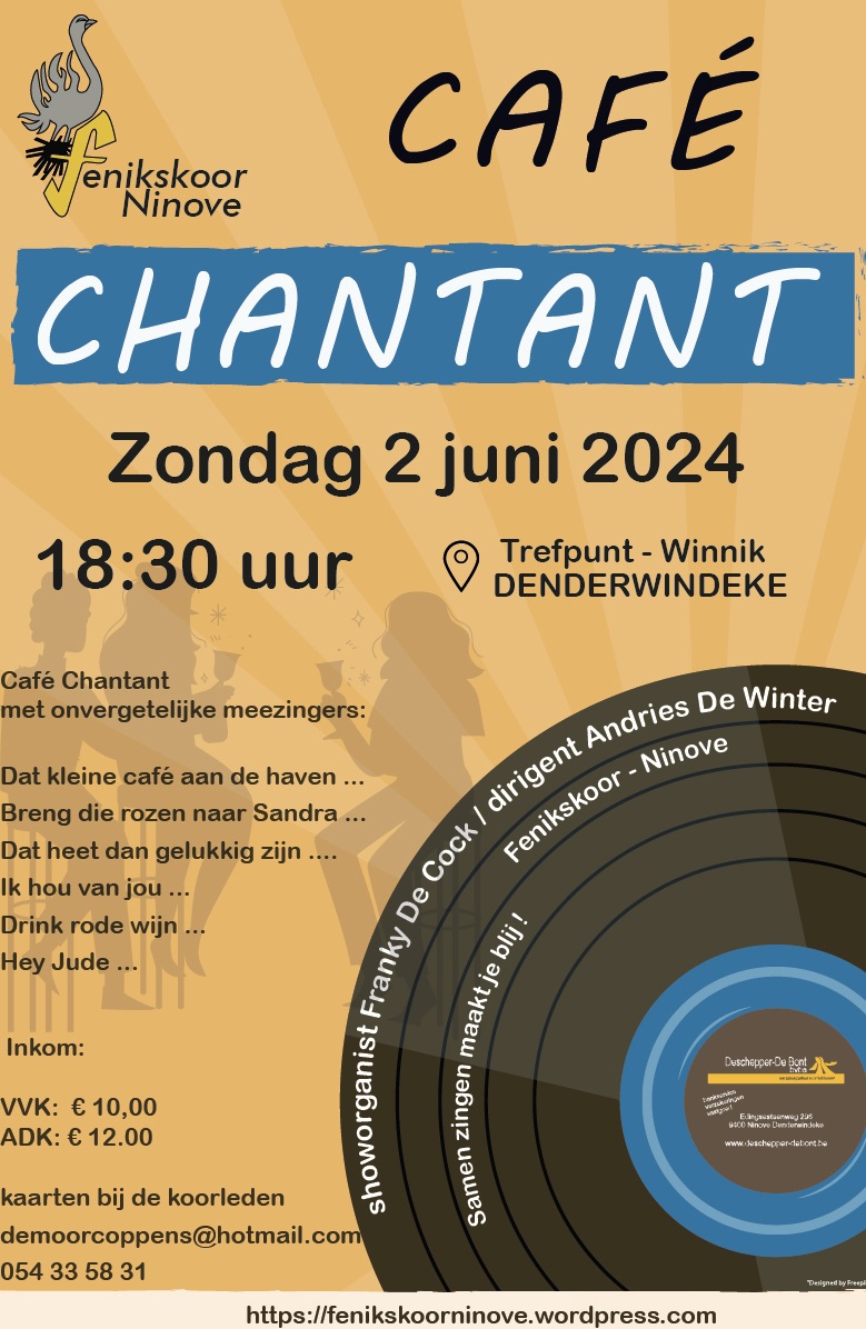 DENDERWINDEKE – Zing mee met het Fenikskoor tijdens hun gezellige café chantant op zondag 2 juni in het Trefpunt in Denderwindeke.