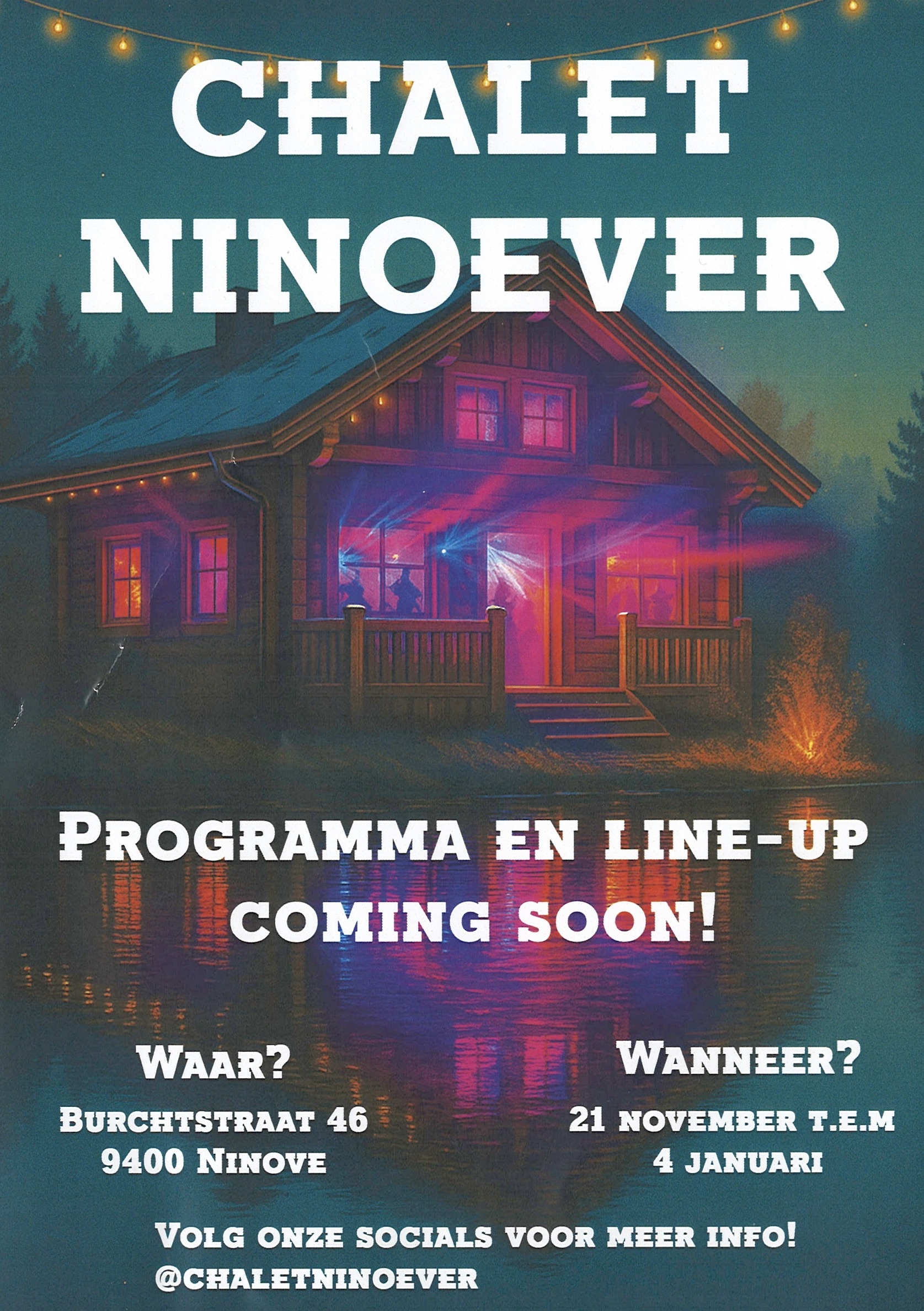 De initiatiefnemers behoren tot Dreams Event bv. “Maar we willen vooral bekend staan als ‘De Chalet’, die op termijn bij iedereen gekend is. Zelf zijn we van Dendermonde, waar dit concept heel succesvol is. Ninove is een van de steden waar in de winterperiode niets gelijkaardig is. We zijn met het stadsbestuur gaan praten over een mooie samenwerking om dit project hier te realiseren. Zeker komen dus, vanaf 21 november; we zijn elk weekend open. Via de sociale media zal je ons volledige programma kunnen ontdekken.”