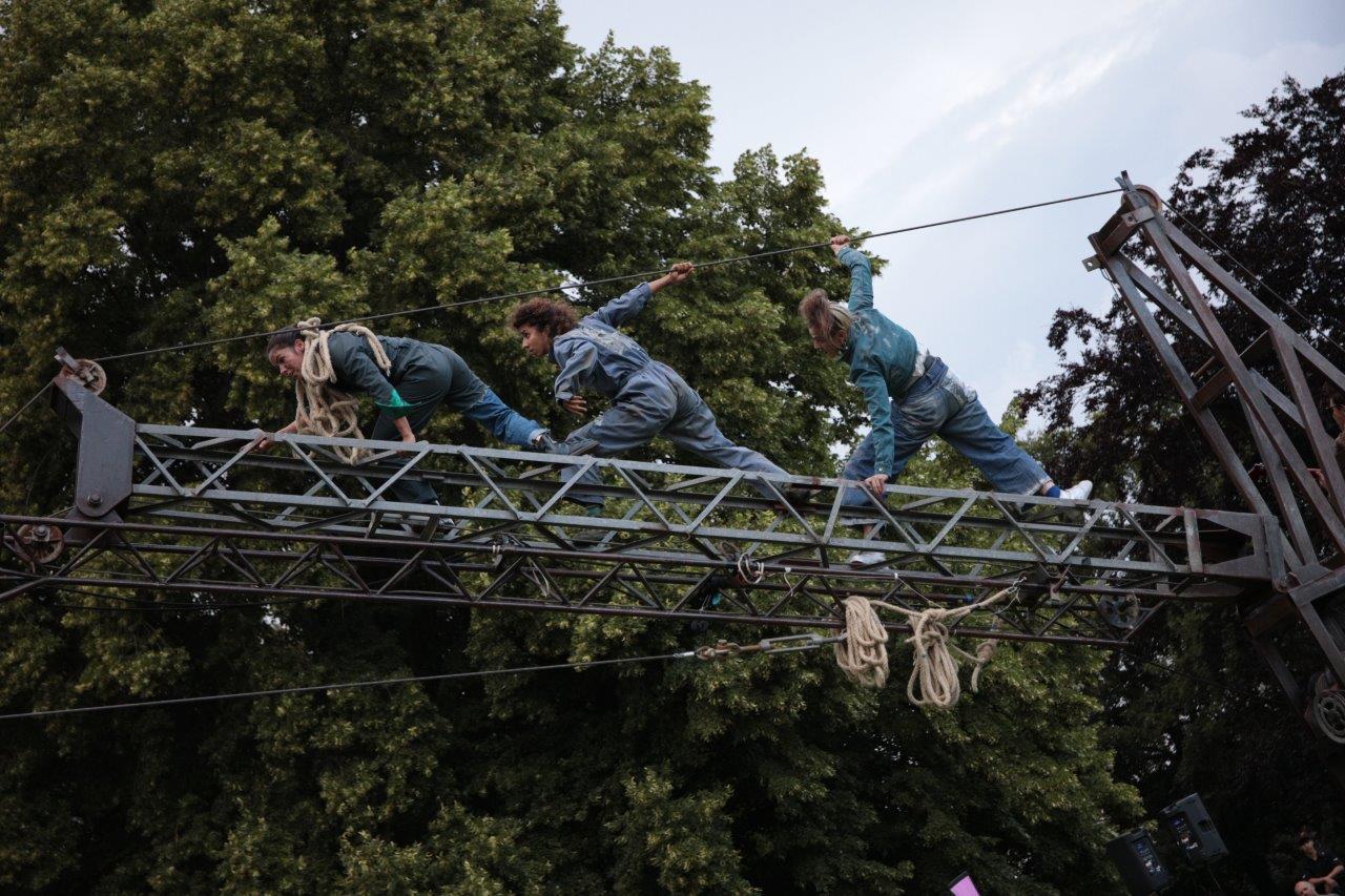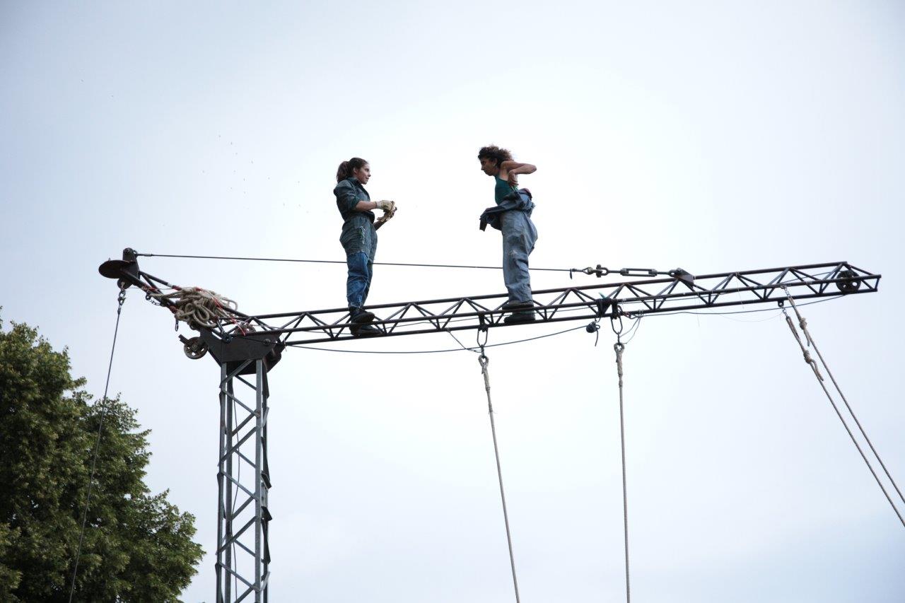 De vrouwen bevinden zich in woelig water: hun wereld is platgebrand, de kraan rest als een majestueus relict in een post-apocalyptisch decor. Slangenmens Cléo Lanfranchi, muzikante Lison Maillet en trapezeartiesten Viola Grazioli en Alexia Fremaux pogen de wreedheid en de kracht van het metalen monster over te nemen in deze spectaculaire trapeze-act.