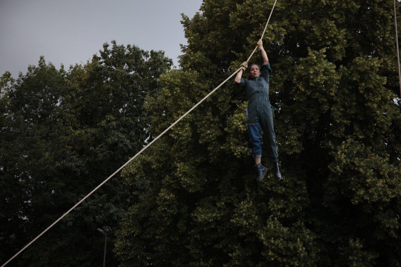 Een apocalyptisch slot van een adembenemende vrouwenclub op grote hoogte.