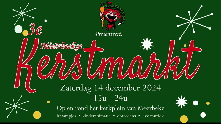 MEERBEKE – MKV De Kloefkappers organiseren zaterdag 14 december voor de derde keer hun gezellige kerstmarkt op het kerkplein en de parking aan de Gemeentehuisstraat.