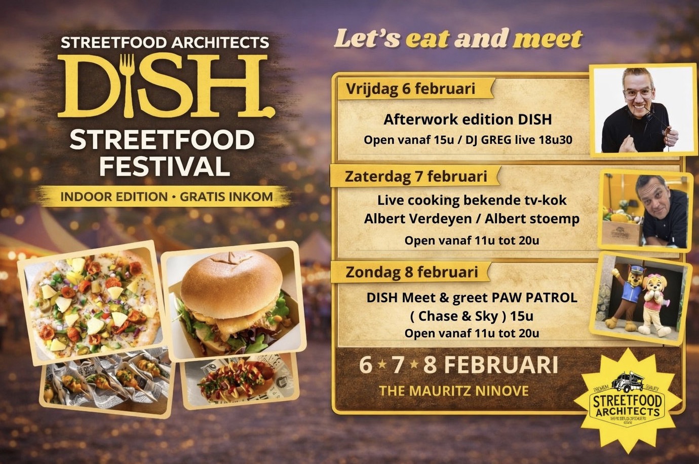 - DISH: vrijdag 6, zaterdag 7 en zondag 8 februari 2026, gratis toegang.