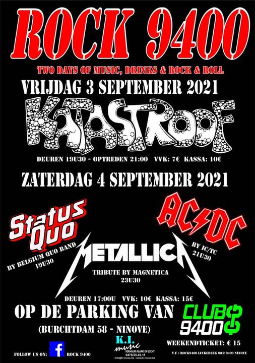 Vrijdag 3 en zaterdag 4 september heeft de eerste editie plaats van het nieuwe rockfestival Rock9400. Er zijn optredens van Katastroof en coverbands van Status Quo, Metallica en AC/DC.