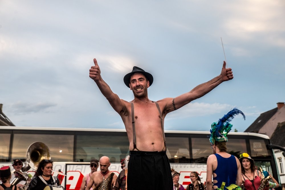 En dan moest het grootste optreden van de avond nog komen nl de propere fanfare van de vieze gasten. Met niet minder dan 70 muzikanten, dansers, jongleurs en clowns namen zij de graanmarkt in.