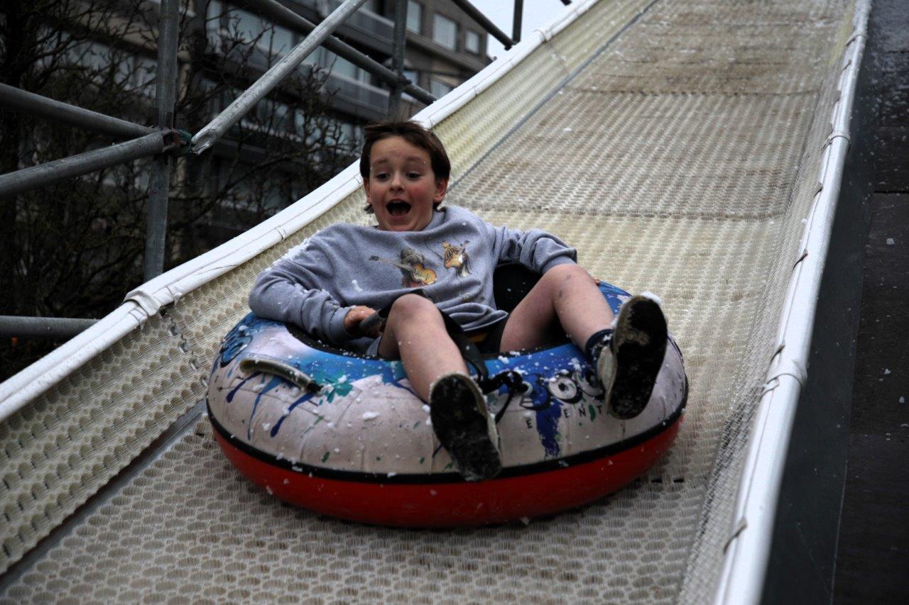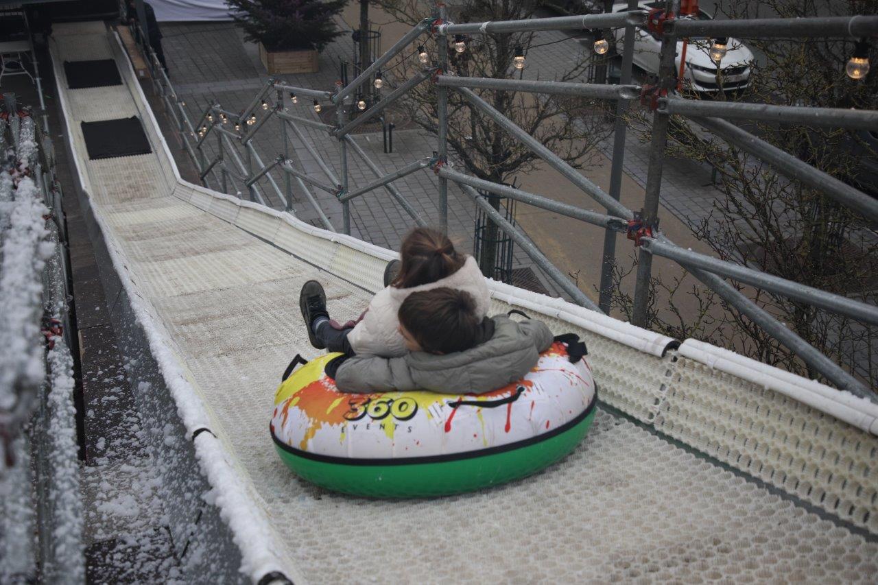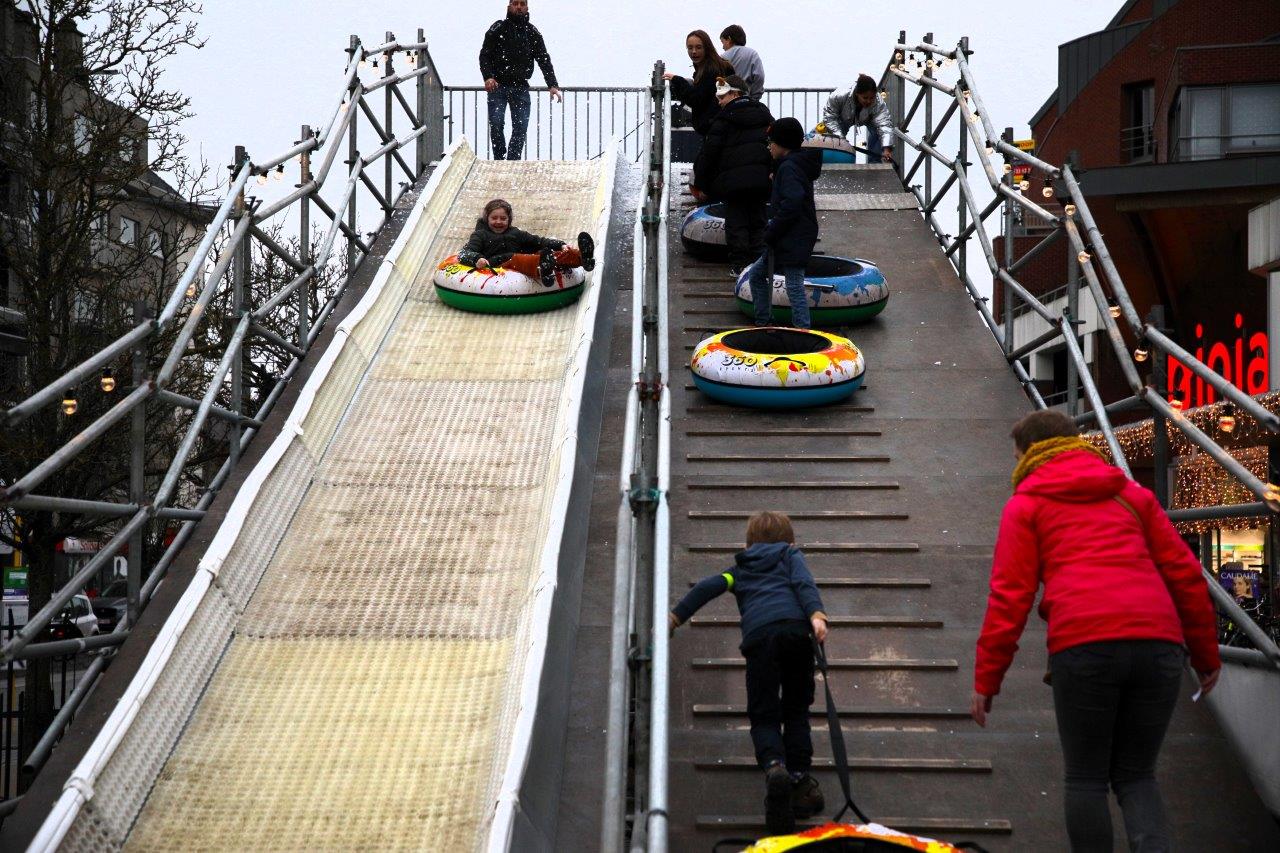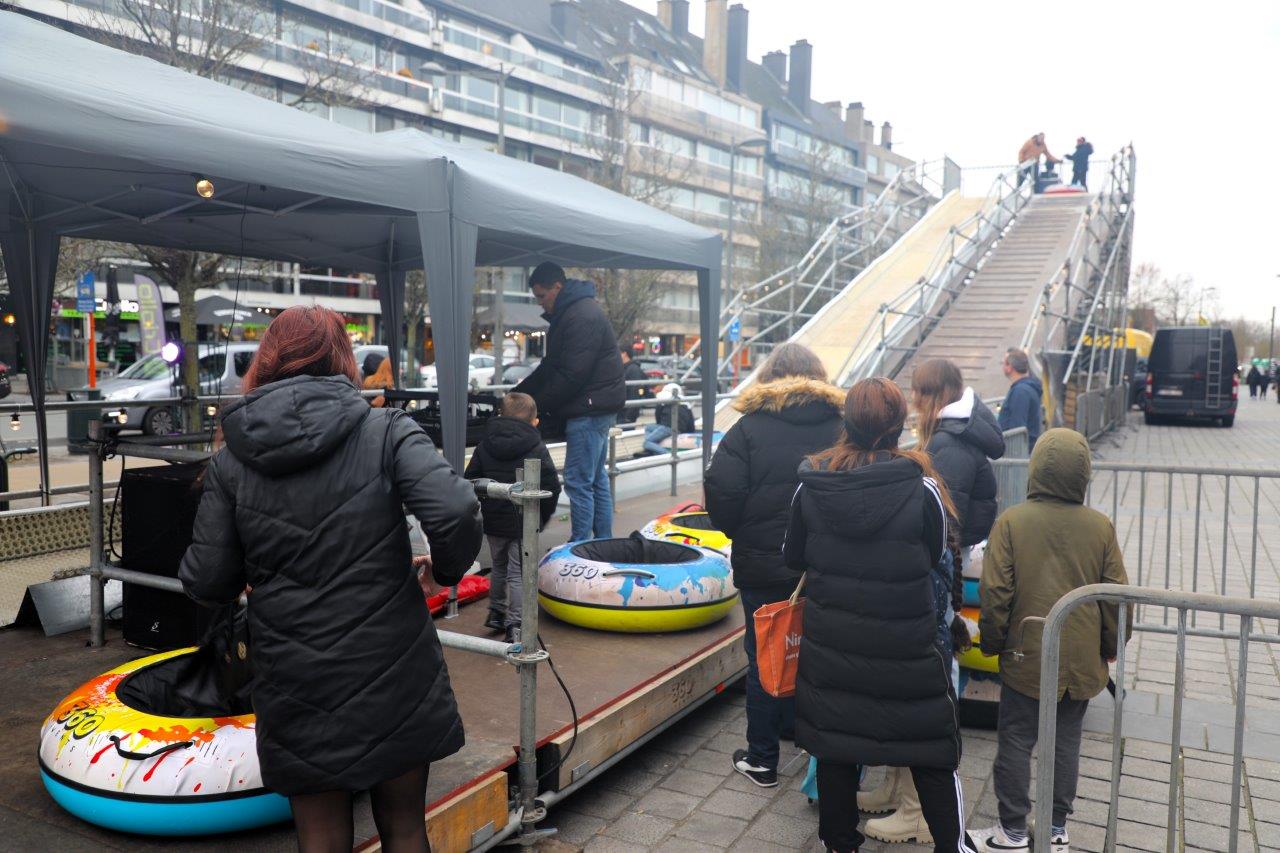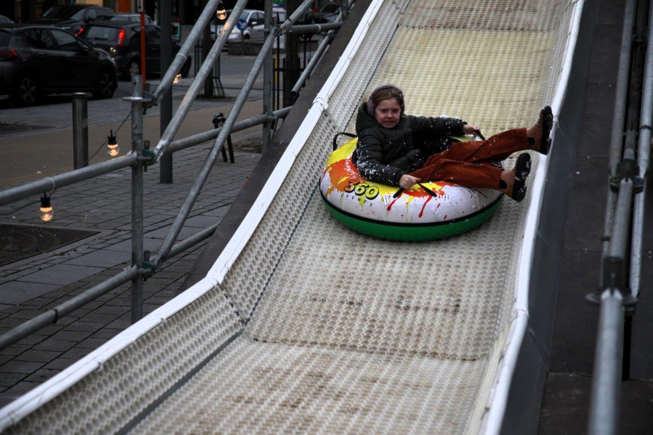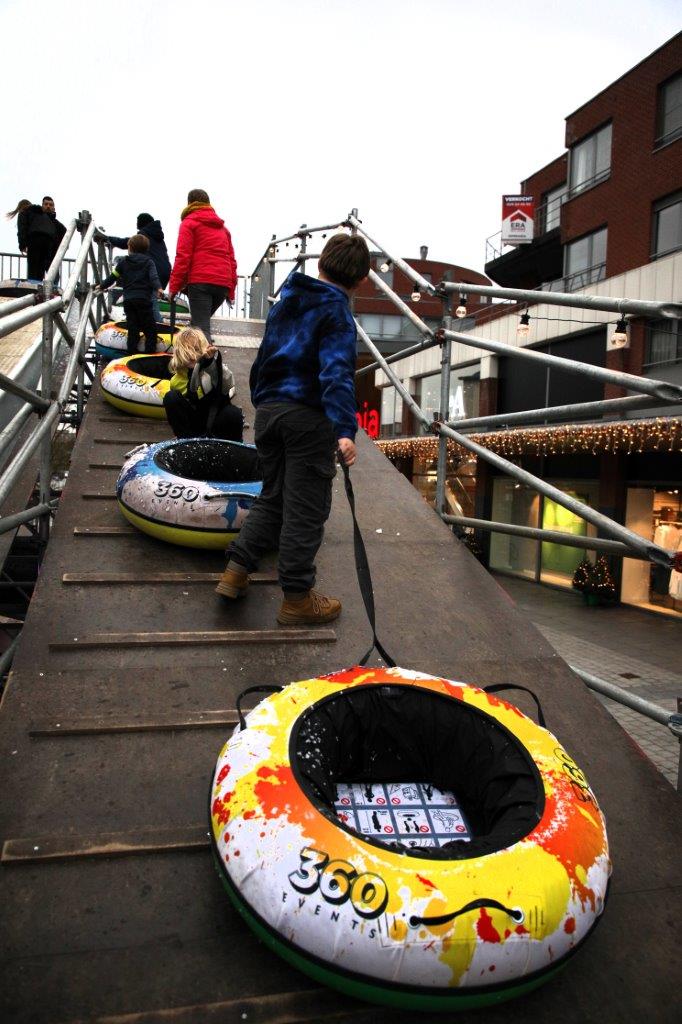 De kerstbandenglijbaan is ook open op vrijdag 22 en zaterdag 23 december, woensdag 27 en donderdag 28 december. Het winterkermisje blijft nog tot 31 december staan.