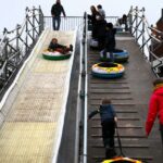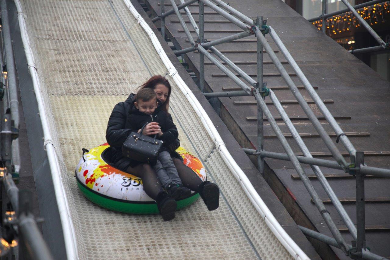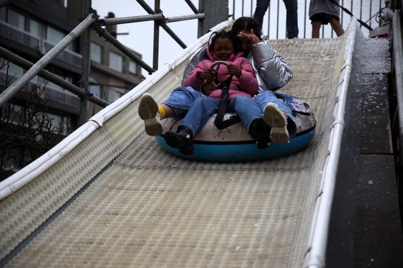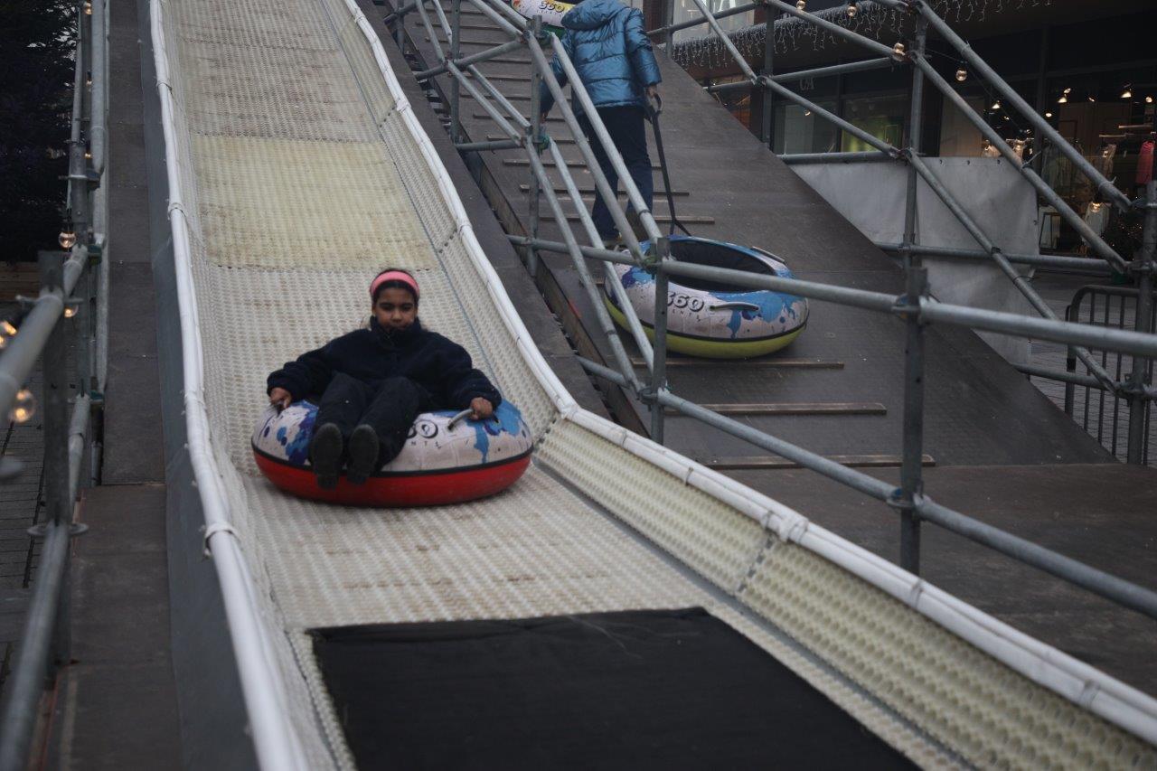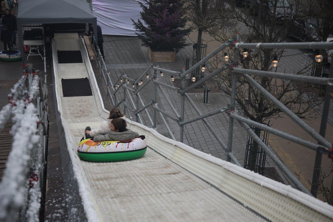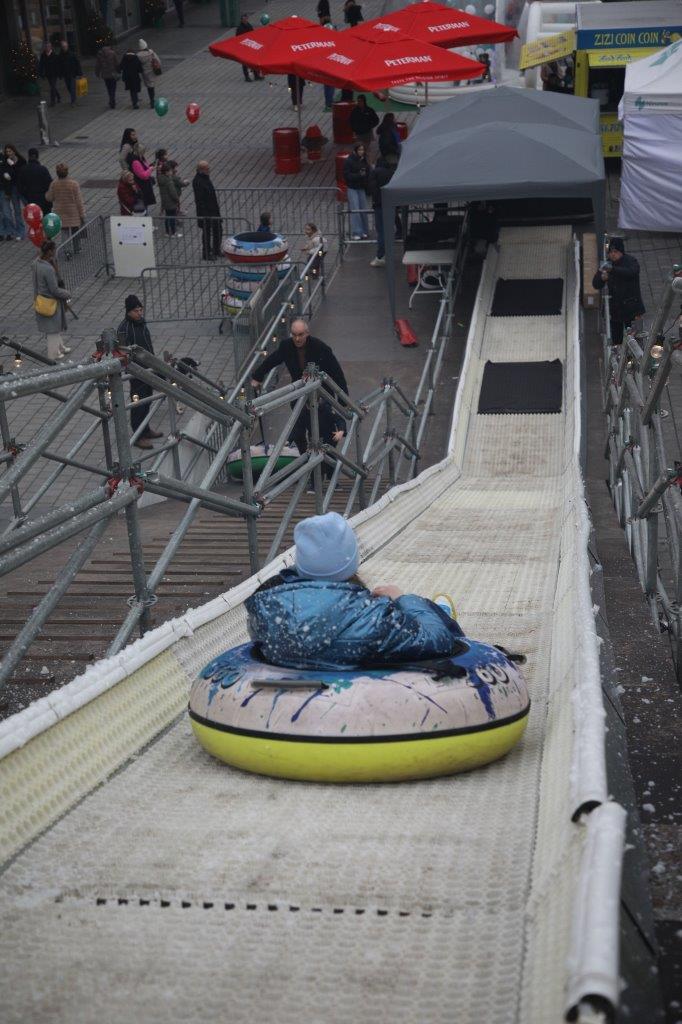 De kerstbandenglijbaan is ook open op vrijdag 22 en zaterdag 23 december, woensdag 27 en donderdag 28 december. Het winterkermisje blijft nog tot 31 december staan.