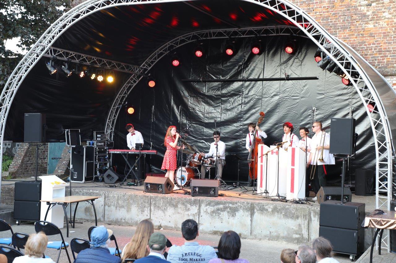 Het was de bedoeling, dat Radio Oorwoud het feestje zou verderzetten op het buitenpodium, maar de weergoden beslisten daar helaas anders over. De plensbui kon de pret echter niet bederven, want de boel verhuisde gewoon naar binnen.